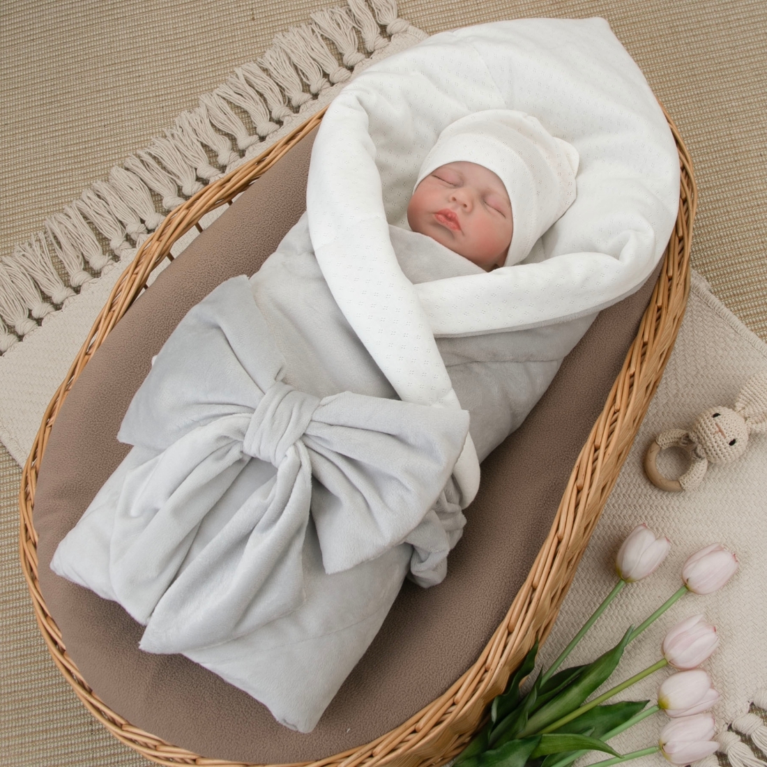 Комплект на выписку 4 предмета "Ажур.Муслин Плед", тюльпанчики, лето