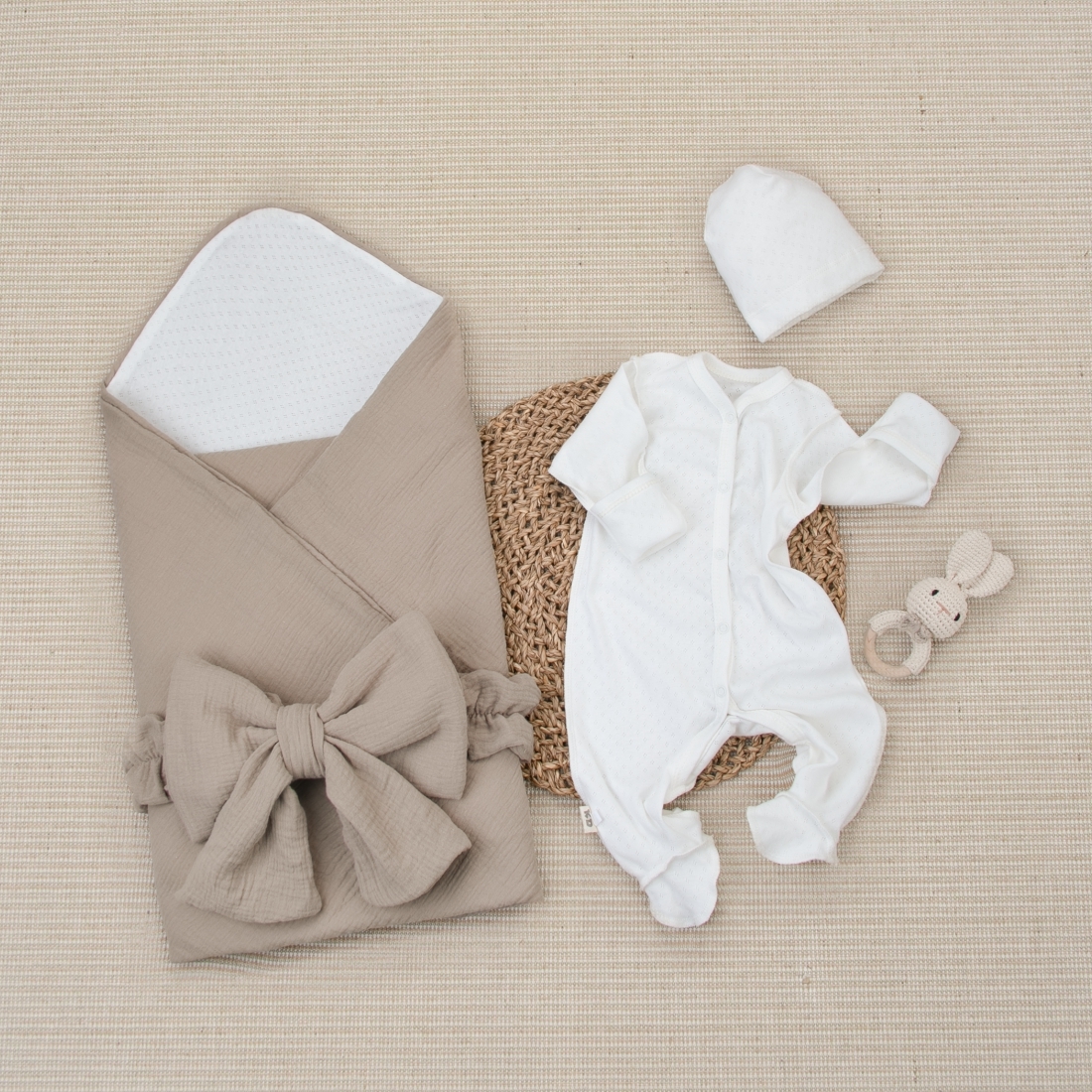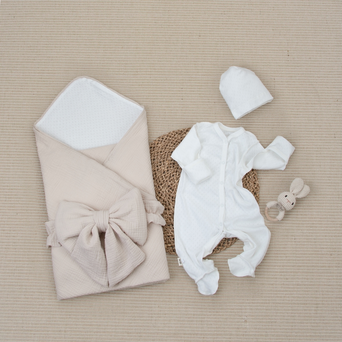Комплект на выписку 4 предмета "Ажур.Муслин Плед", бежевый, лето