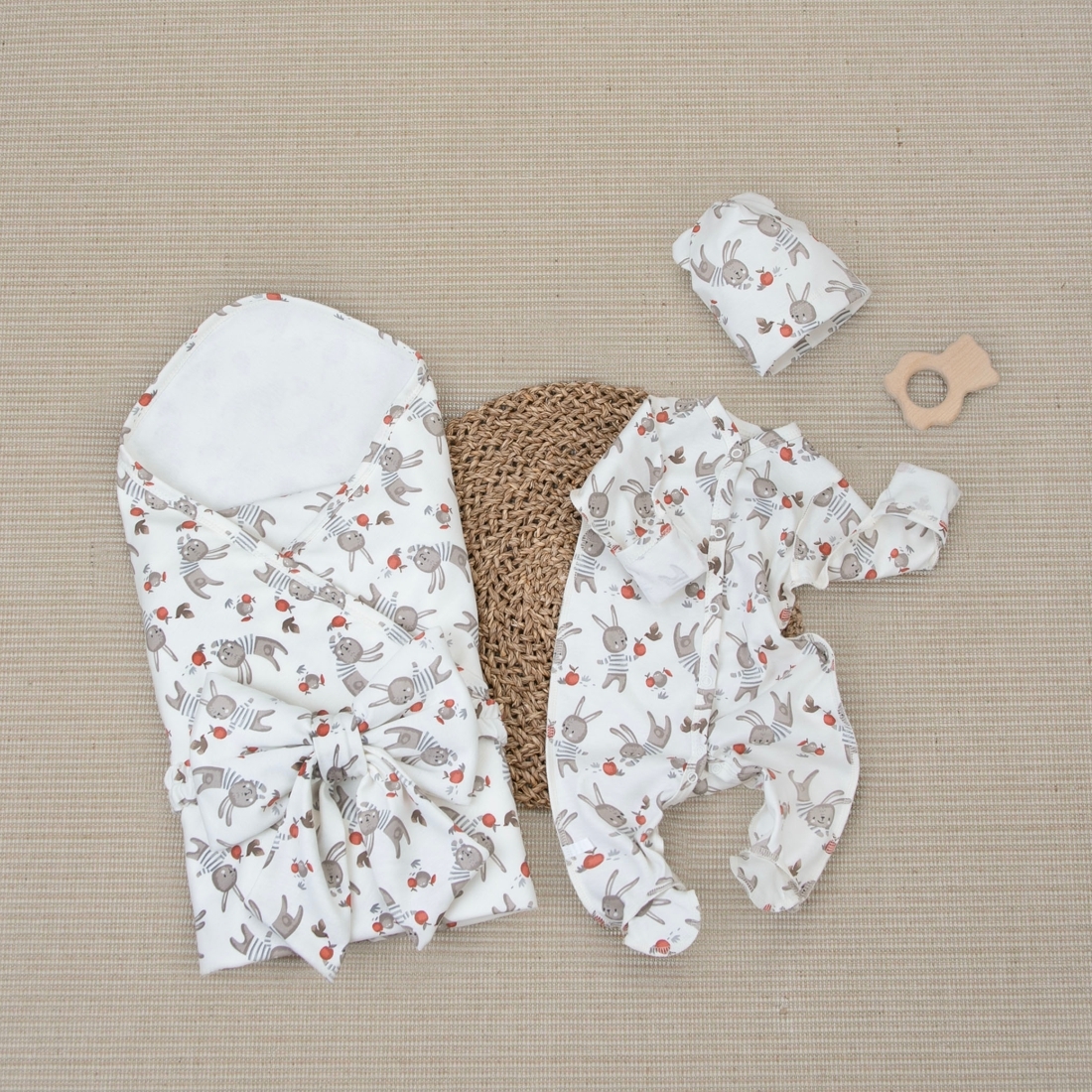 Комплект на выписку 4 предмета "Зайчики.Плед" лето