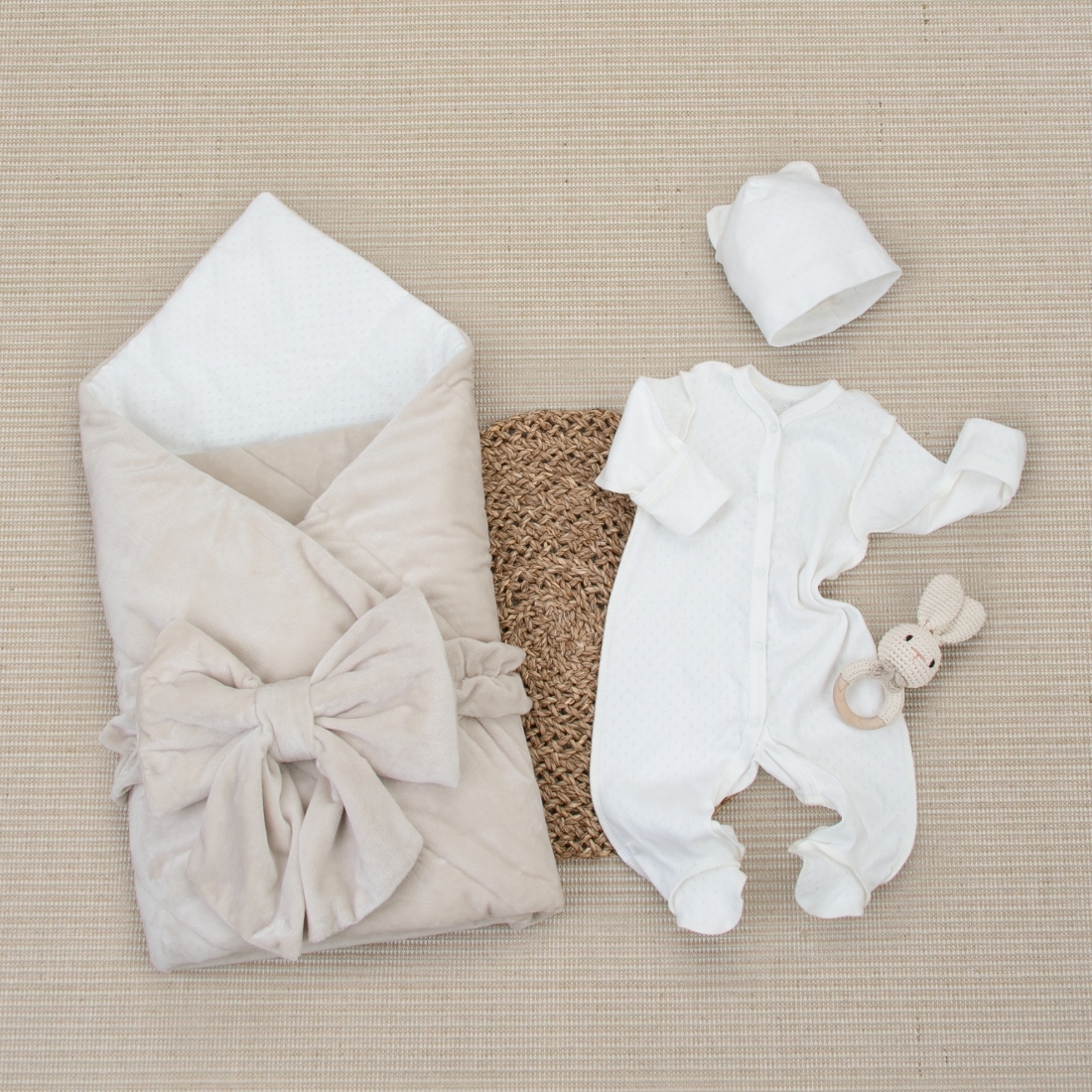 Комплект на выписку 4 предмета "Класика", светло-бежевый, лето