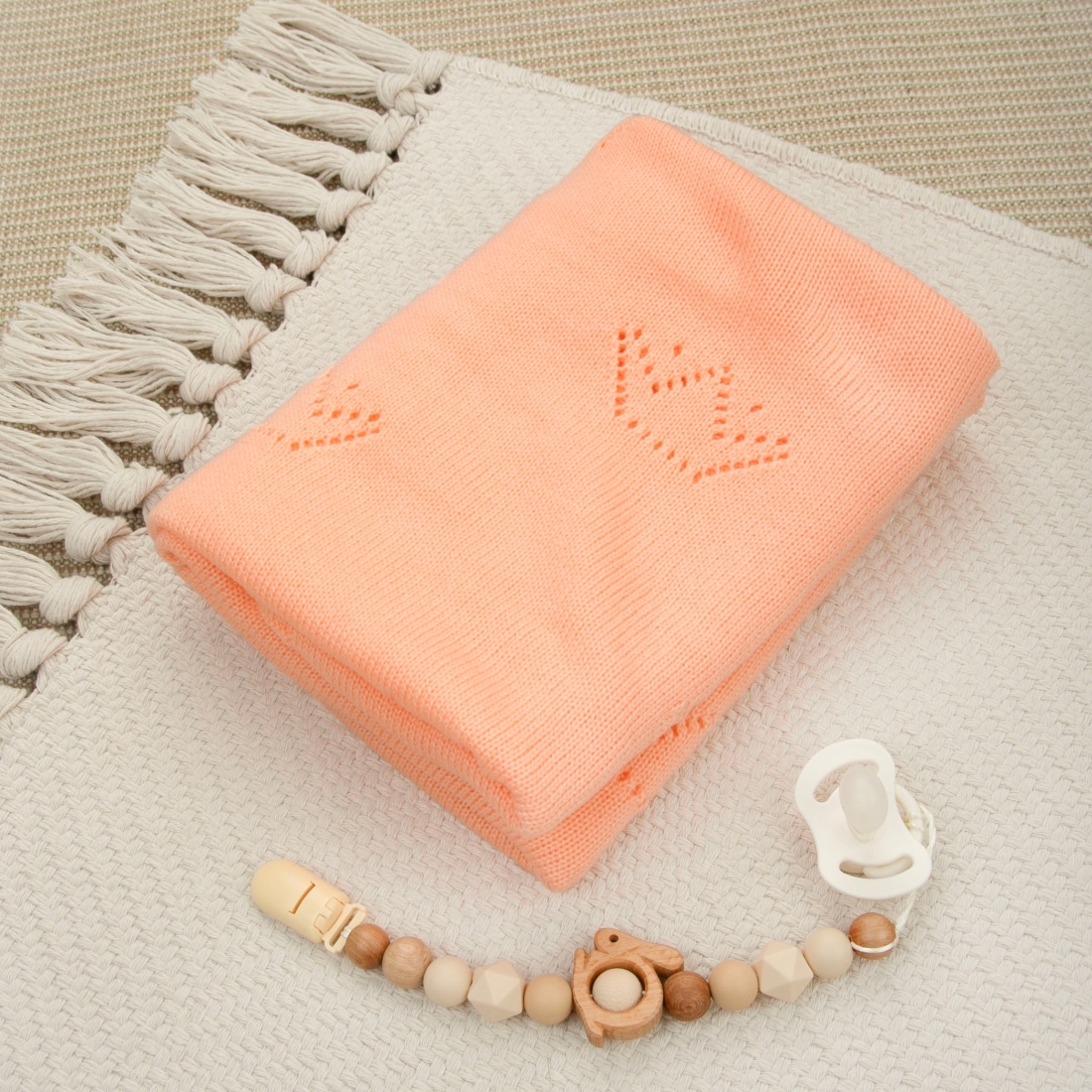 Одеяло-плед "Петелька сердечки, вязаный" 90*90