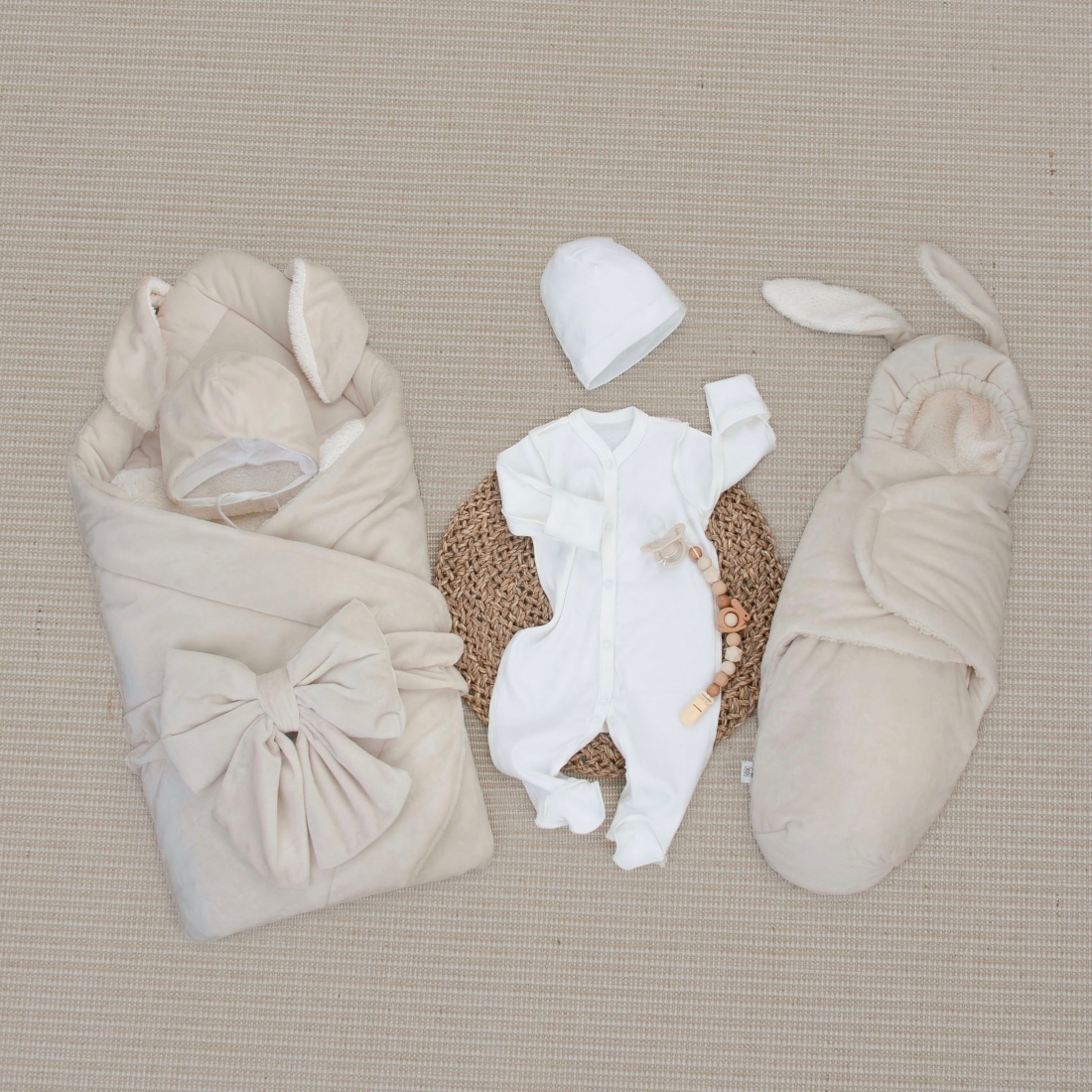 Комплект на выписку 6 предметов "Пушистый Зайка", зимний, бежевый