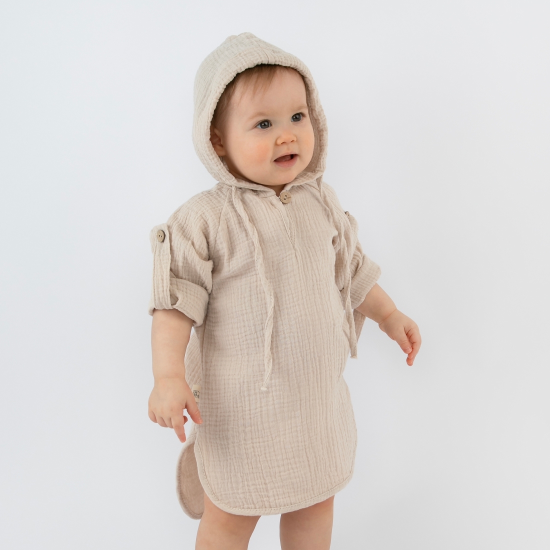 Туника с капюшоном "Муслин", бежевый, лето