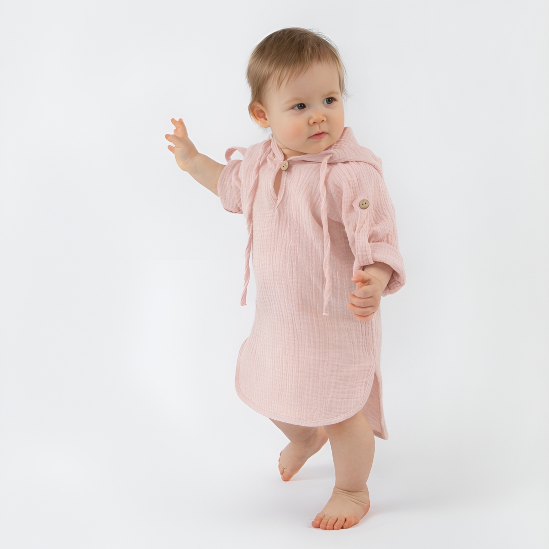 Туника с капюшоном "Муслин", пудра, лето