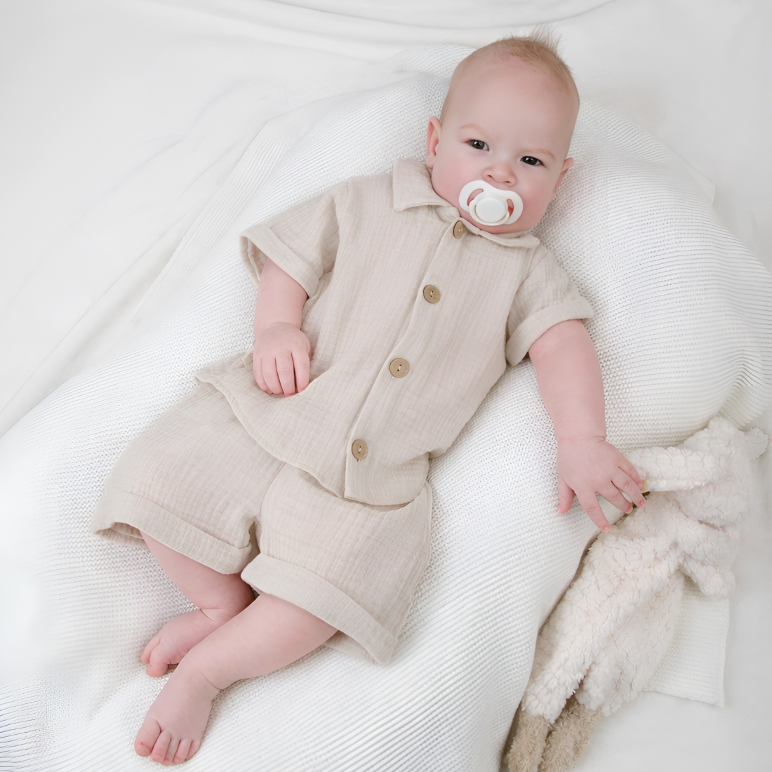 Комплект летний с длинным рукавом для мальчика "Муслин", молоко, лето