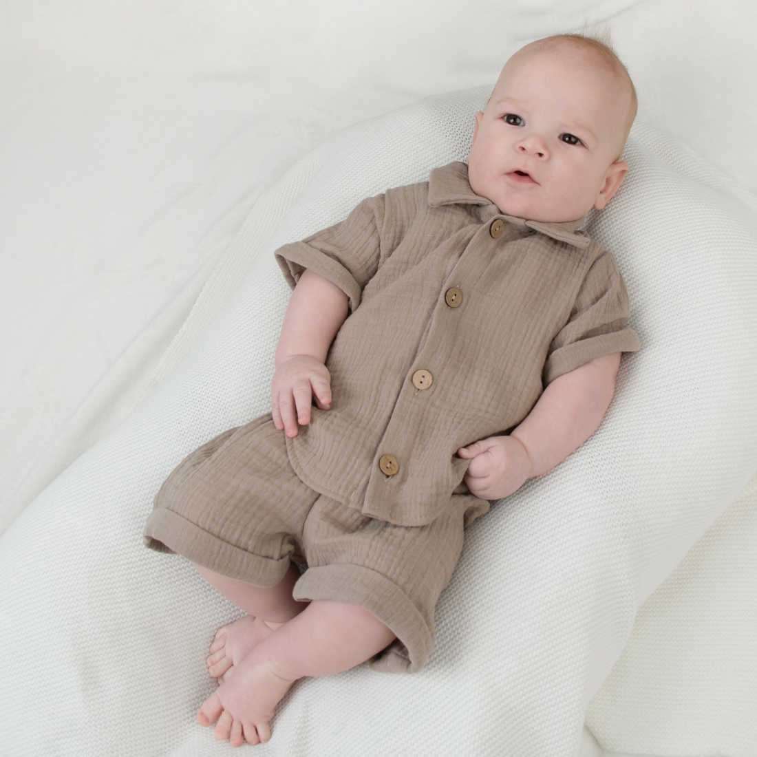 Комплект летний с длинным рукавом для мальчика "Муслин", капучино, лето