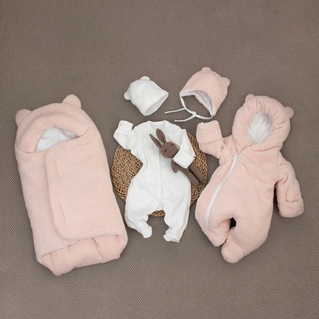 Комплект на выписку 5 предметов "Пушуня", демисезонный, пудра
