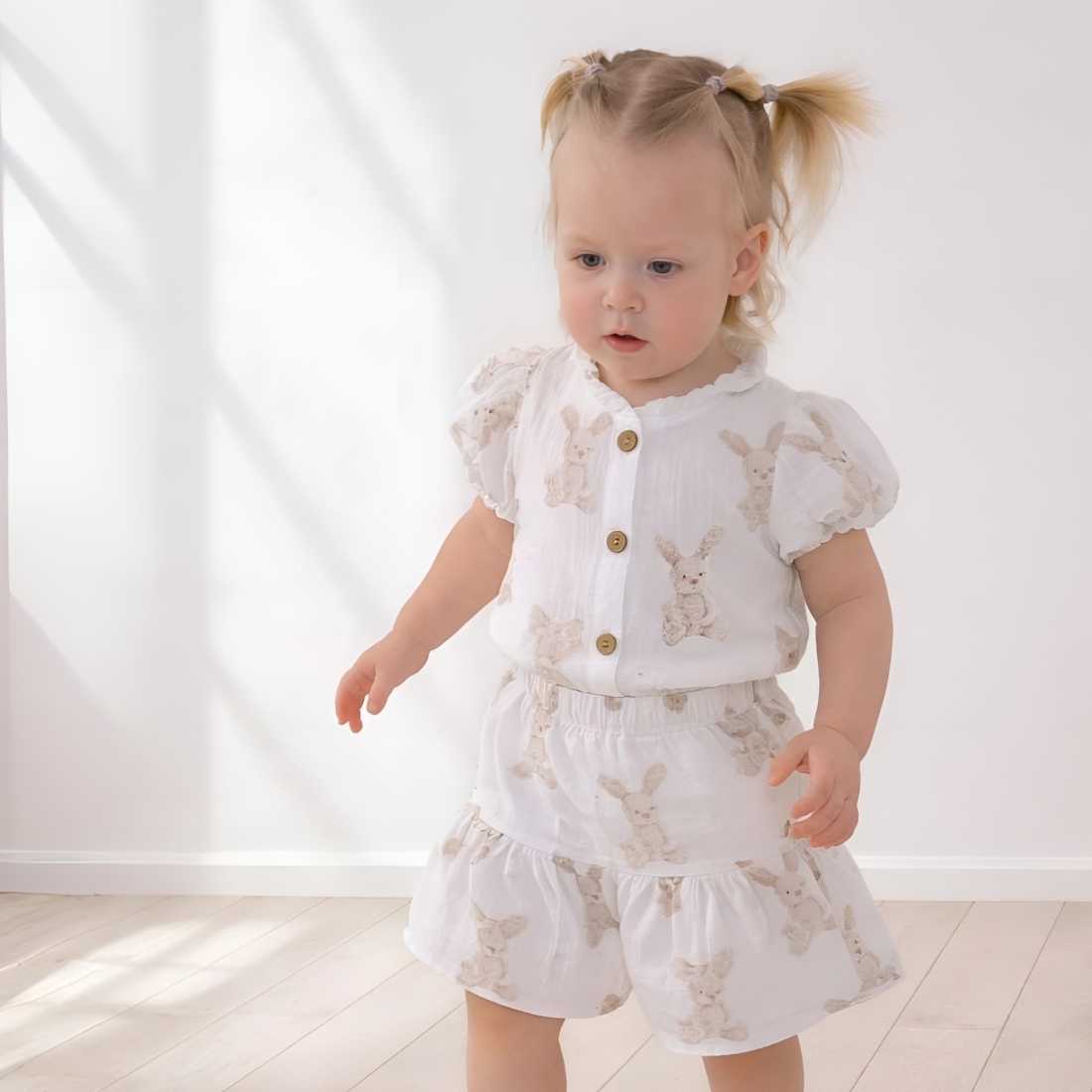 Комплект блузка+шорты "Муслин", зайки, лето