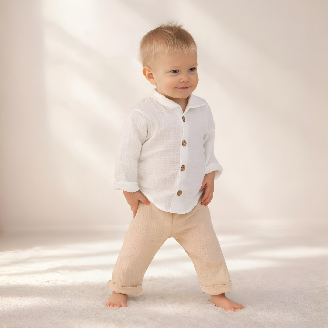 Комплект летний с длинным рукавом для мальчика "Муслин", крем-брюле, лето