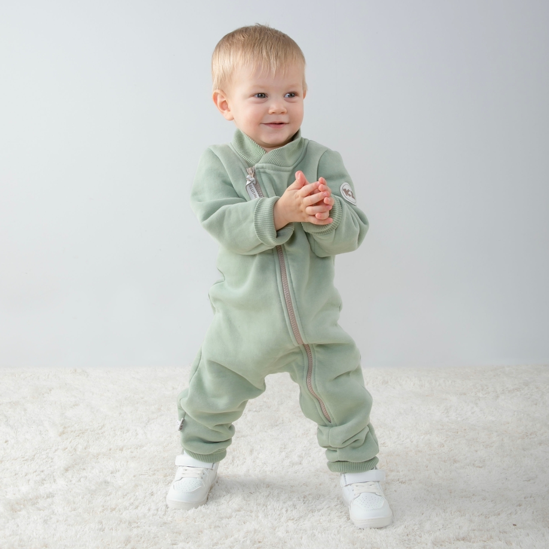 Косая молния на всю длину, делает процесс одевания малыша простым и удобным.