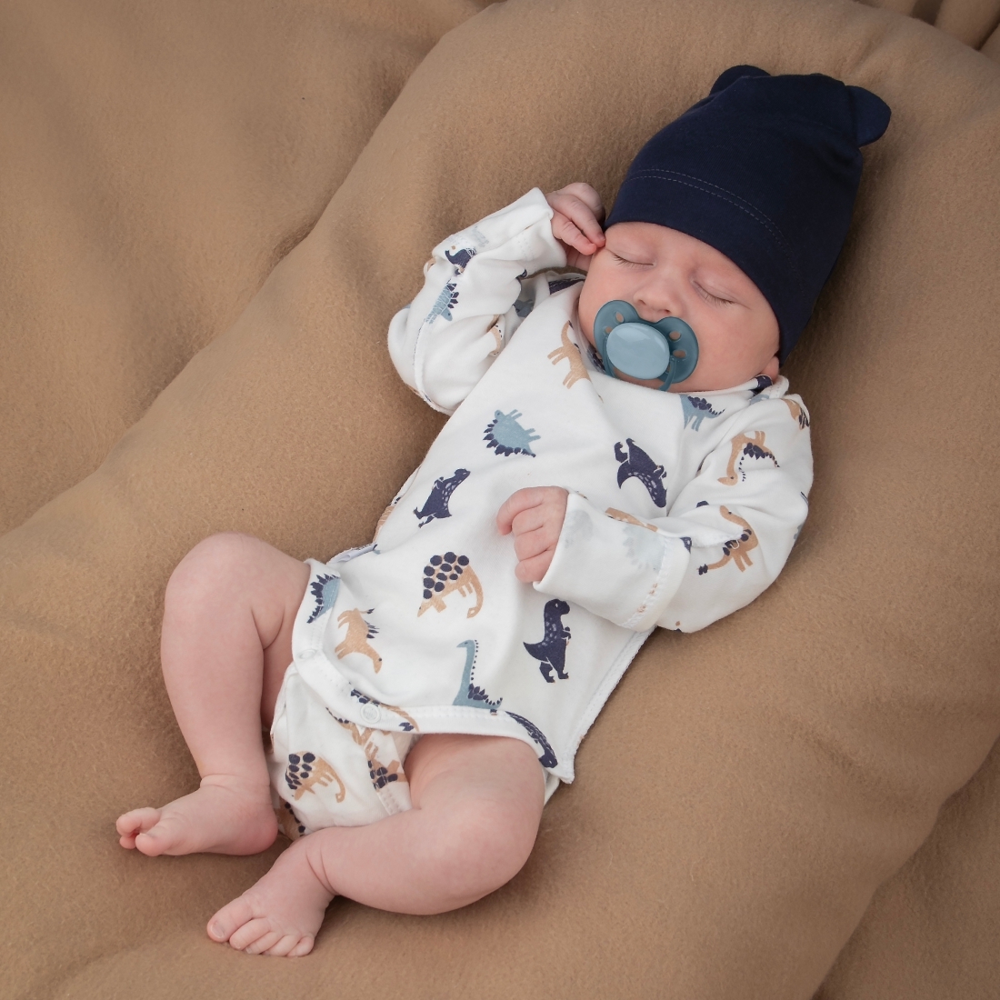 Боди - молочное с принтом динозавров.
