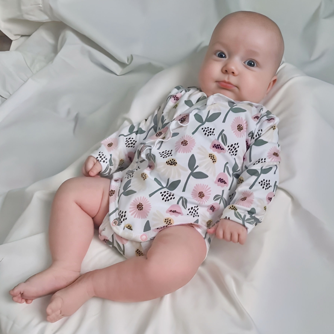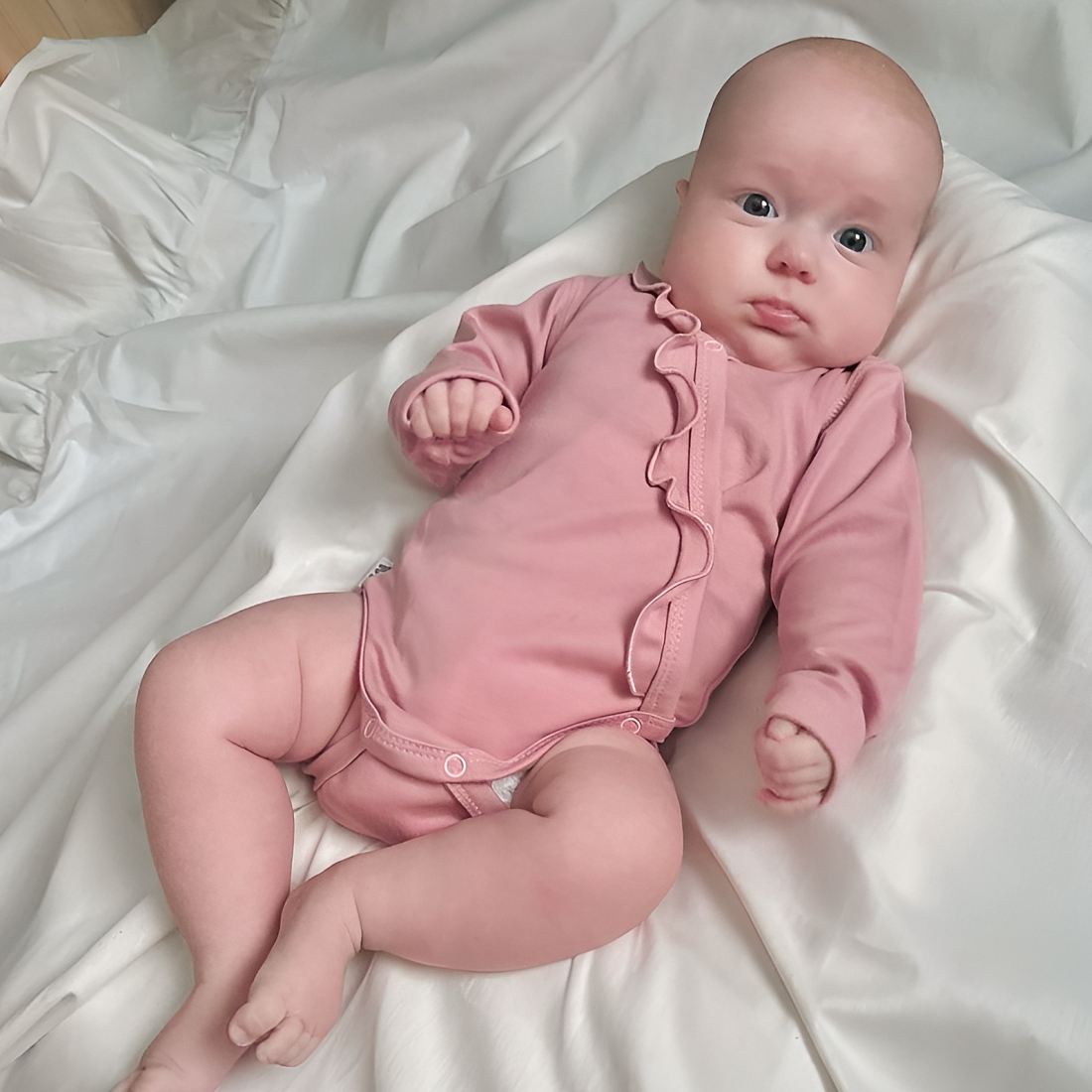 Рукав от линии ворота исключает натирание в проблемной плечевой-подмышечной зоне младенца.