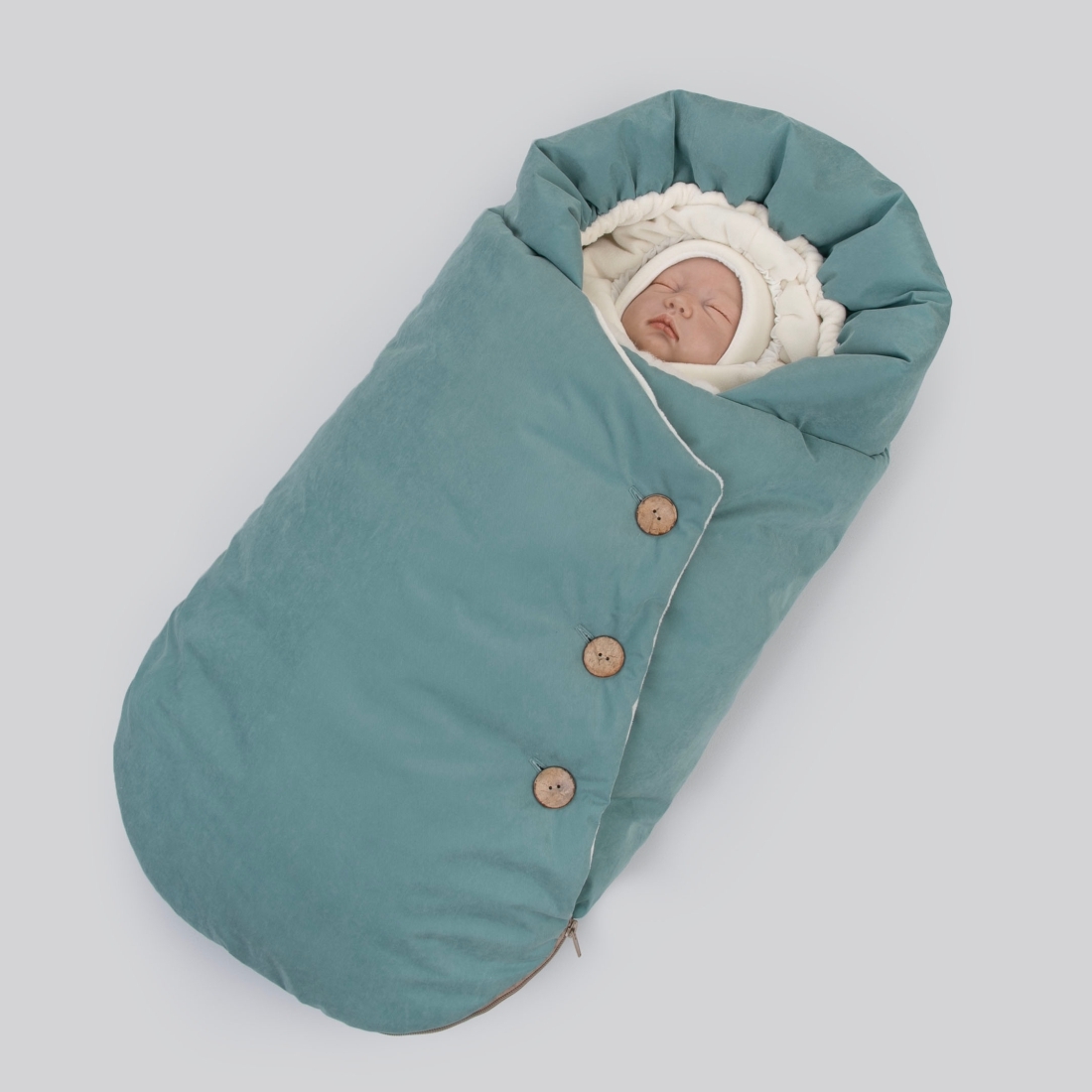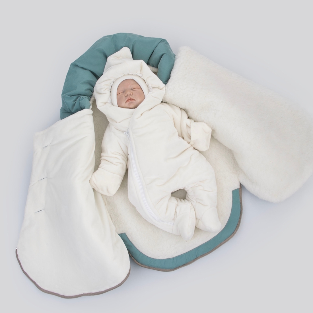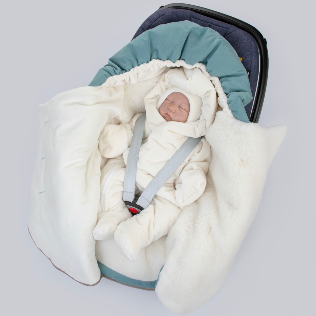 Конверт имеет прорези для автокресла, что позволяет удобно держать малыша.