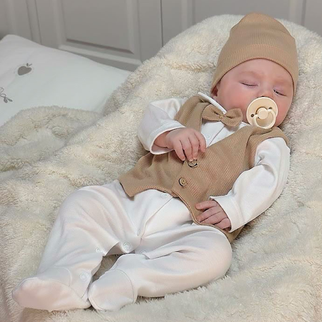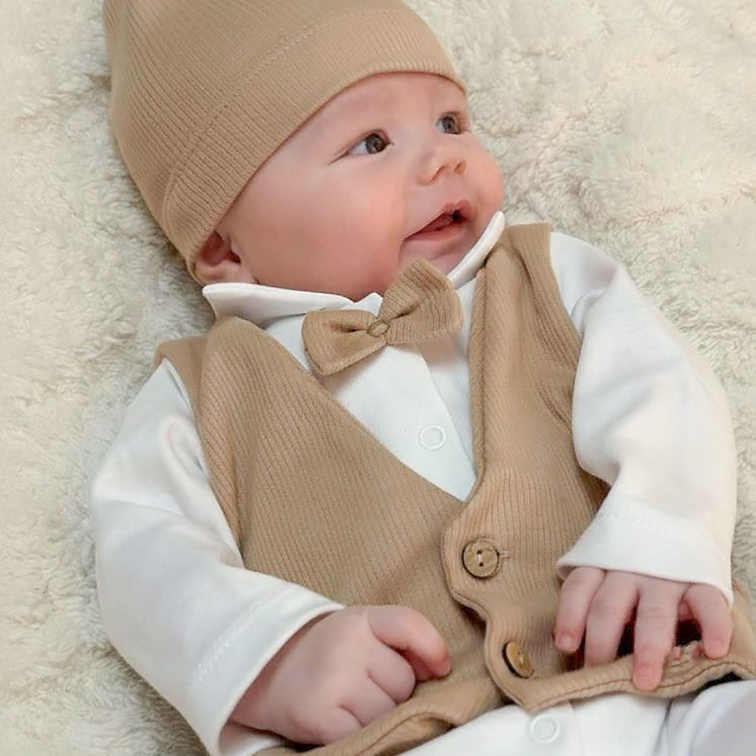 Цвет: Жилет, шапочка и бабочка интерлок рубчик капучино, рубашка белая.