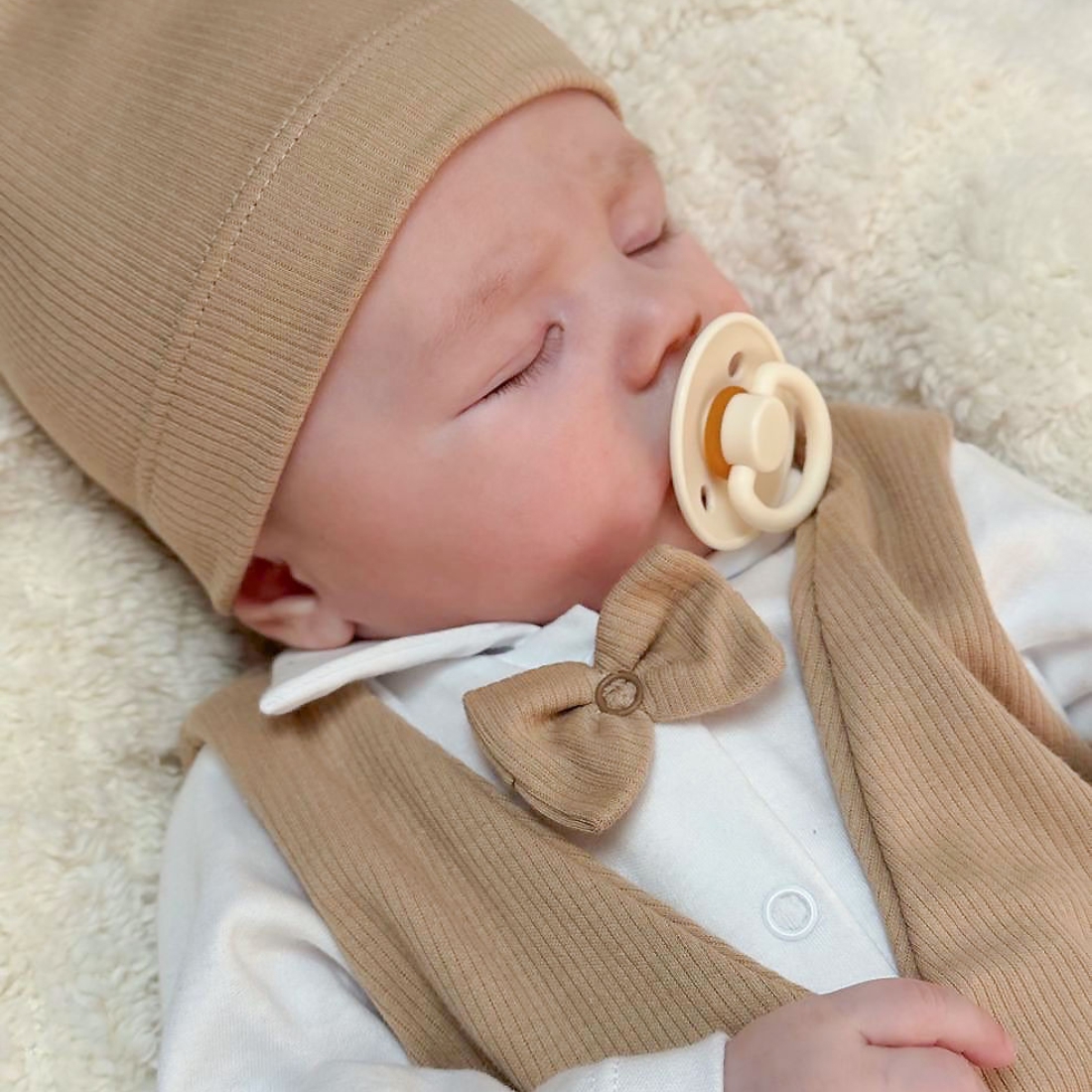 Комплект для юного джентльмена из легкого однослойного комбинезона слипа и шапочки к нему.
