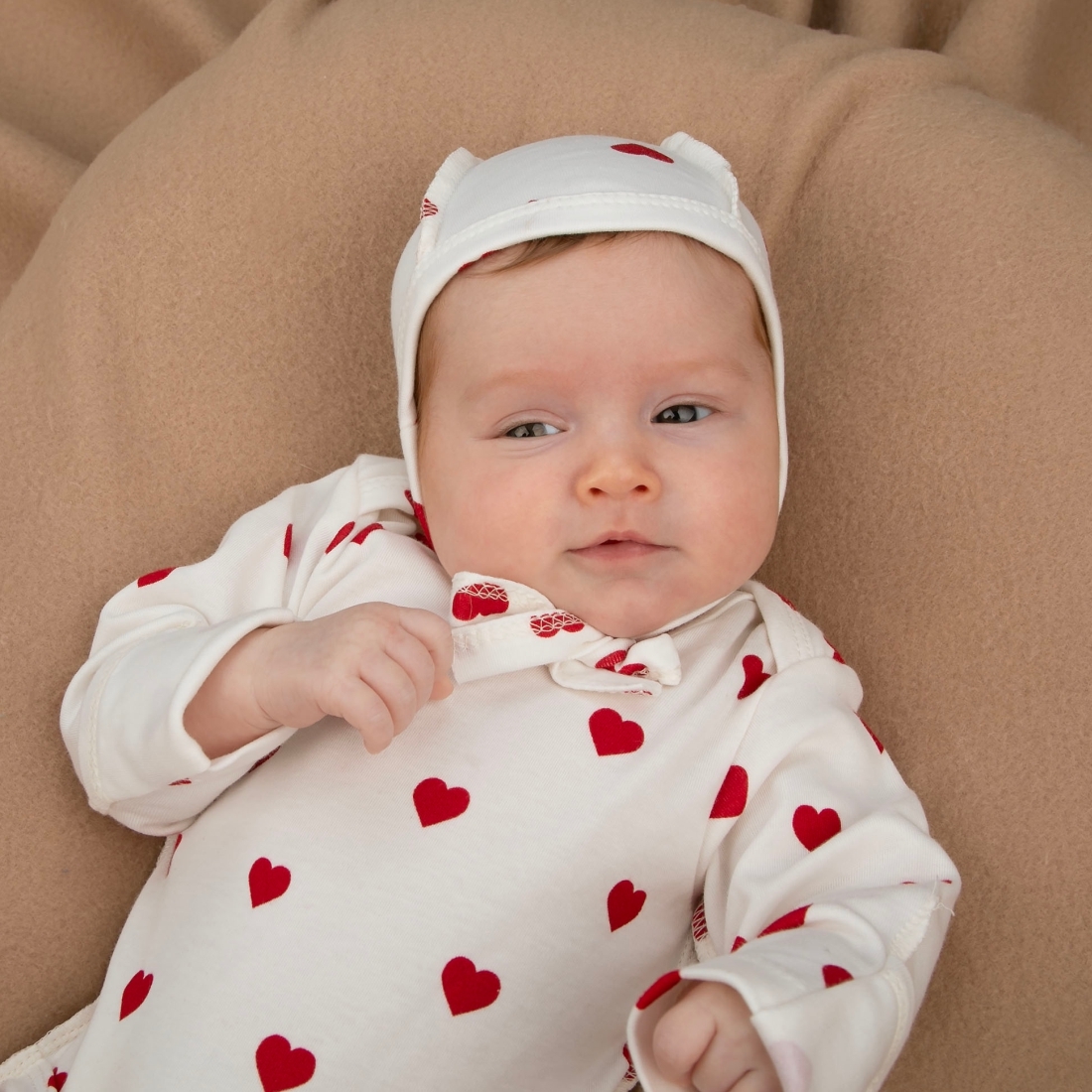 Швы наружу и средняя растяжимость полотна позволяют чепчику хорошо садиться по голове ребенка