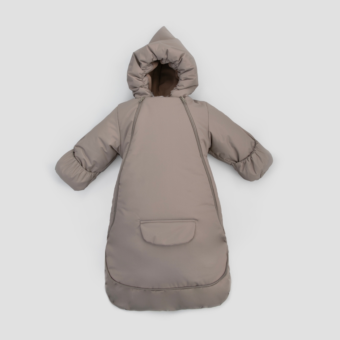 Две молнии по бокам дадут уложить малыша быстро и без лишних хлопот.