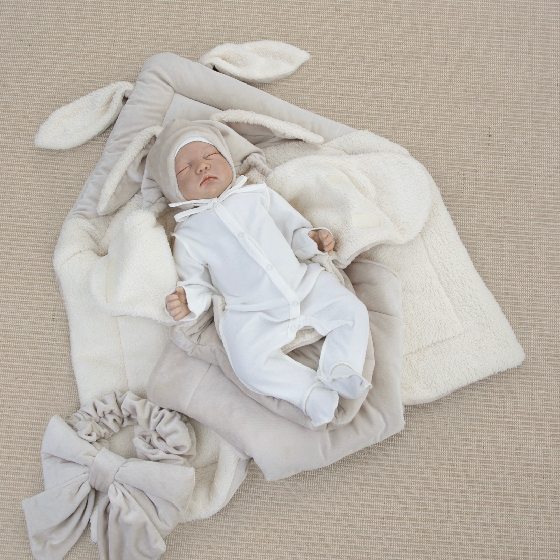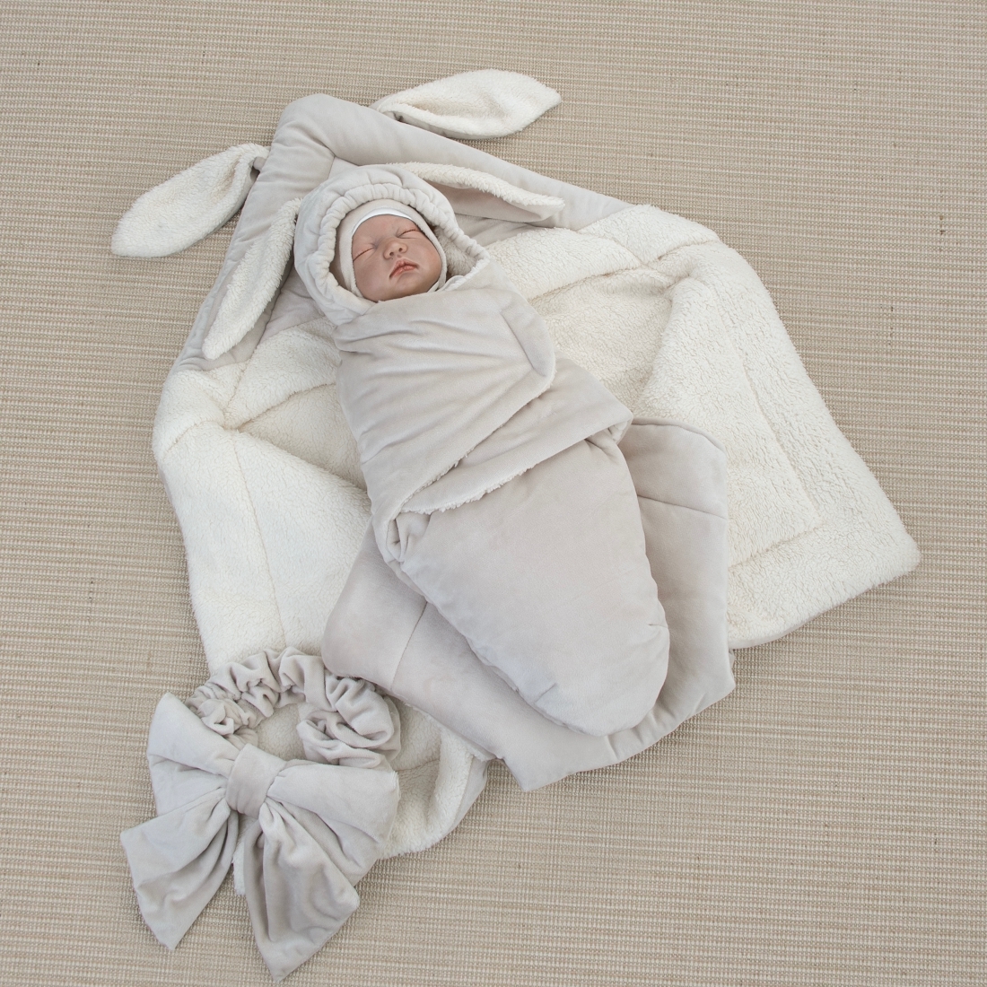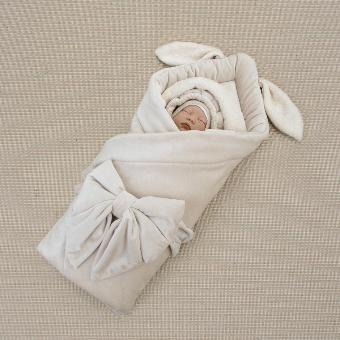 Цвет одеяла, пеленки-трансформер и шапки: бежевый