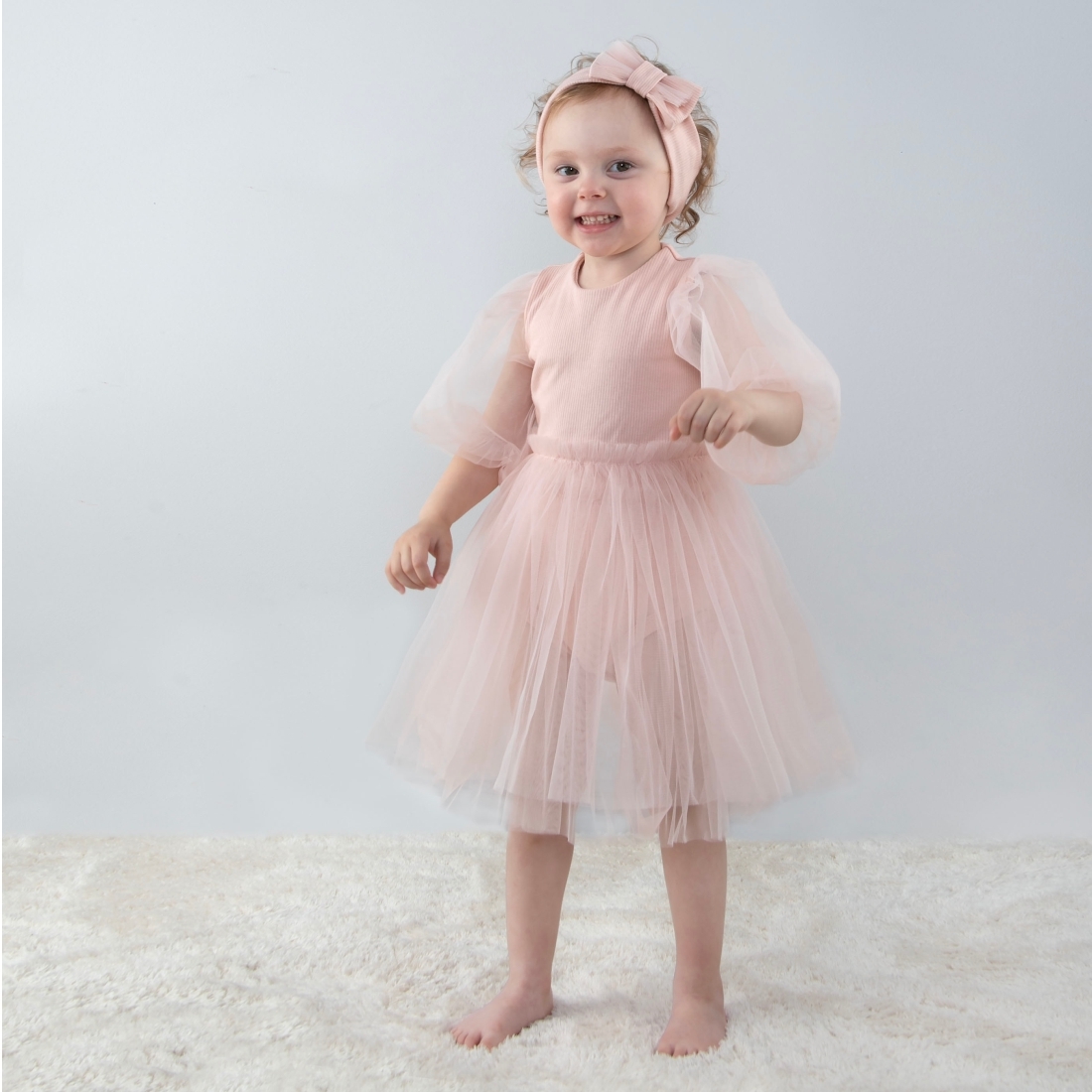 Платье боди Стелла с пышной многослойной юбкой из фатина, с коротким рукавом фонарик,