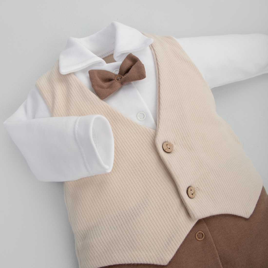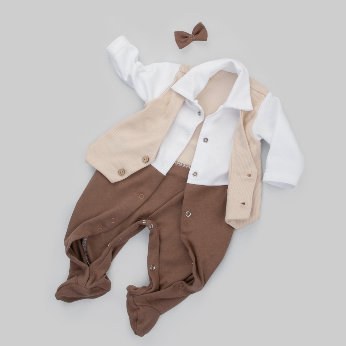 Цвет: Жилет интерлок рубчик бежевый,рубашка белая,Брюки, шапочка и бабочка коричневые.