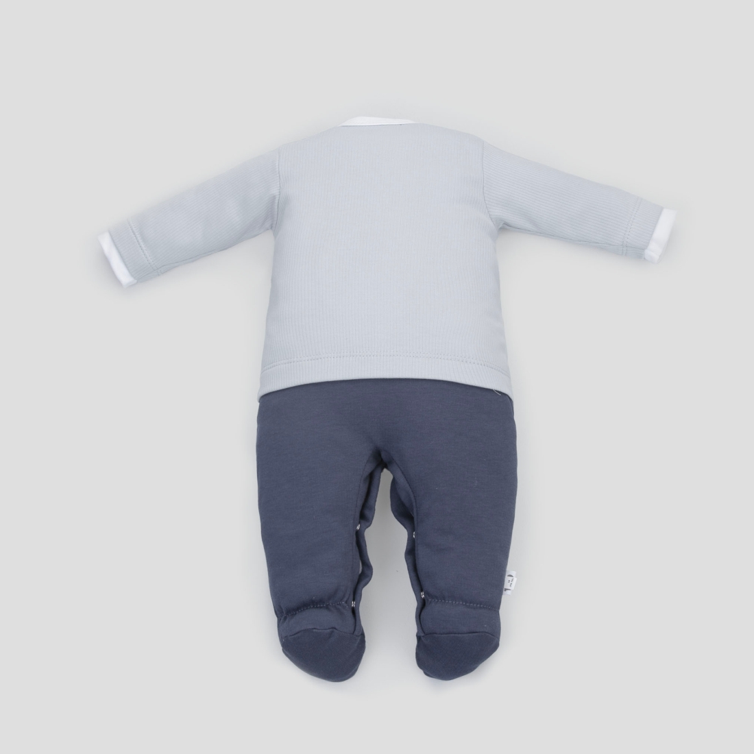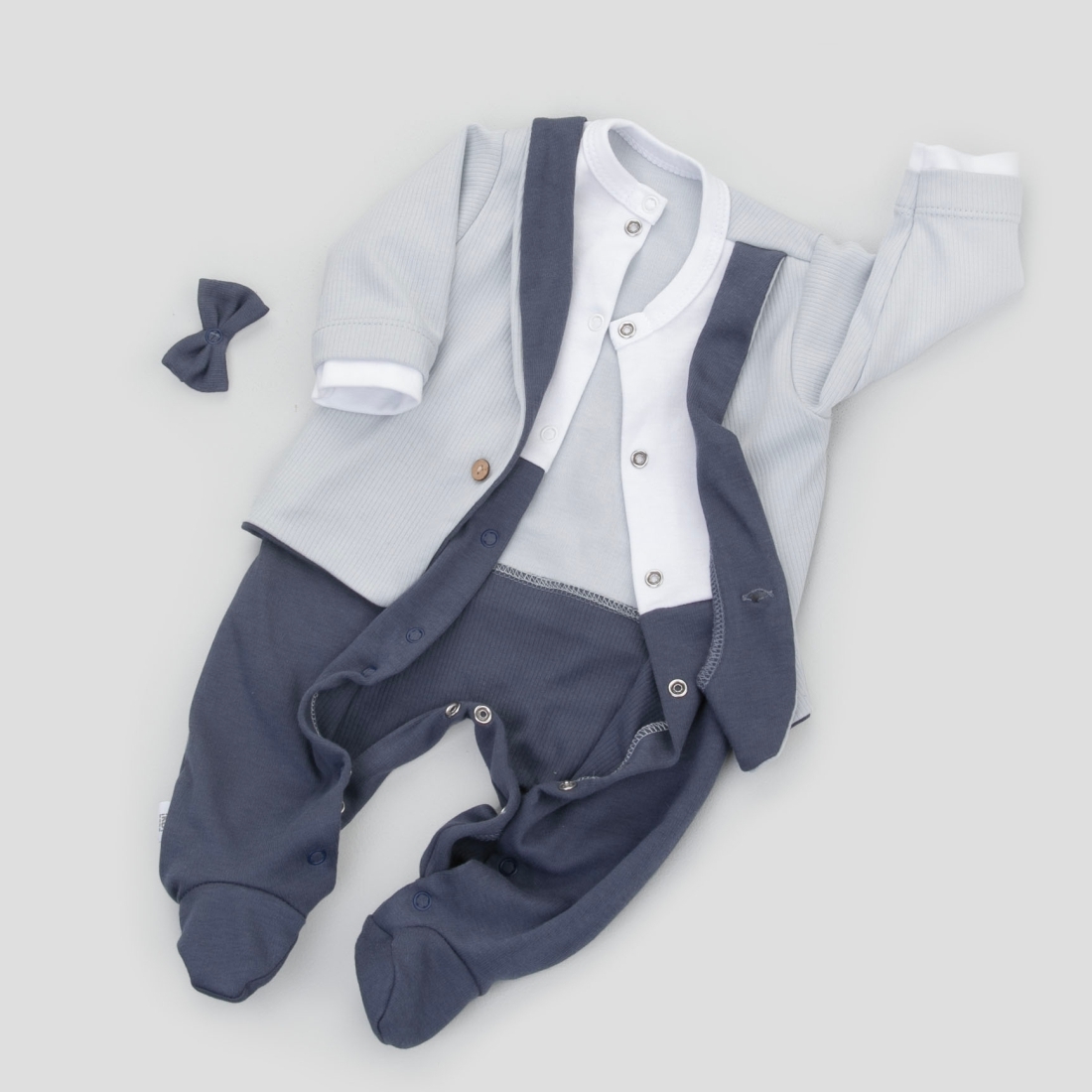 Комплект для юного джентльмена из легкого однослойного комбинезона слипа и шапочки к нему.