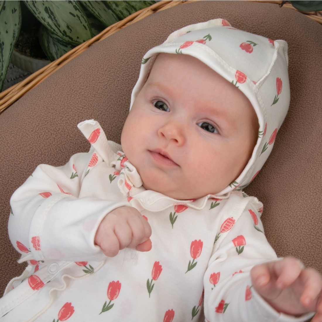 Швы наружу и средняя растяжимость полотна позволяют чепчику хорошо садиться по голове ребенка
