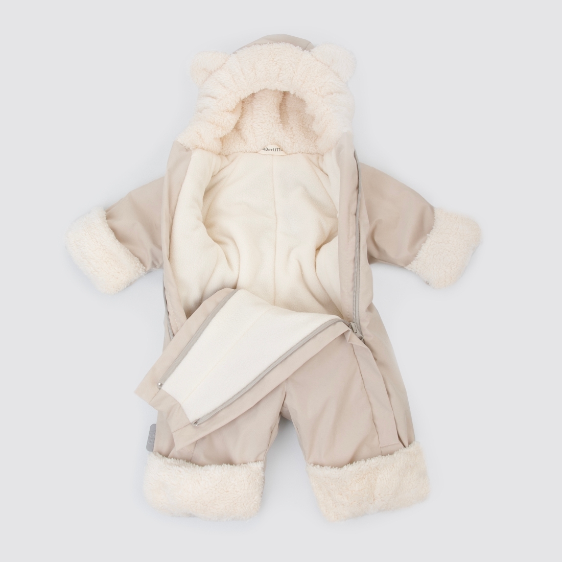 Капюшон на резинке с подкладом из шерпы, плотно прилегает к голове малыша.