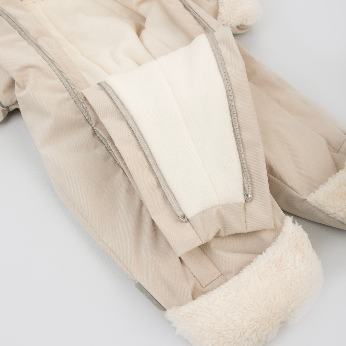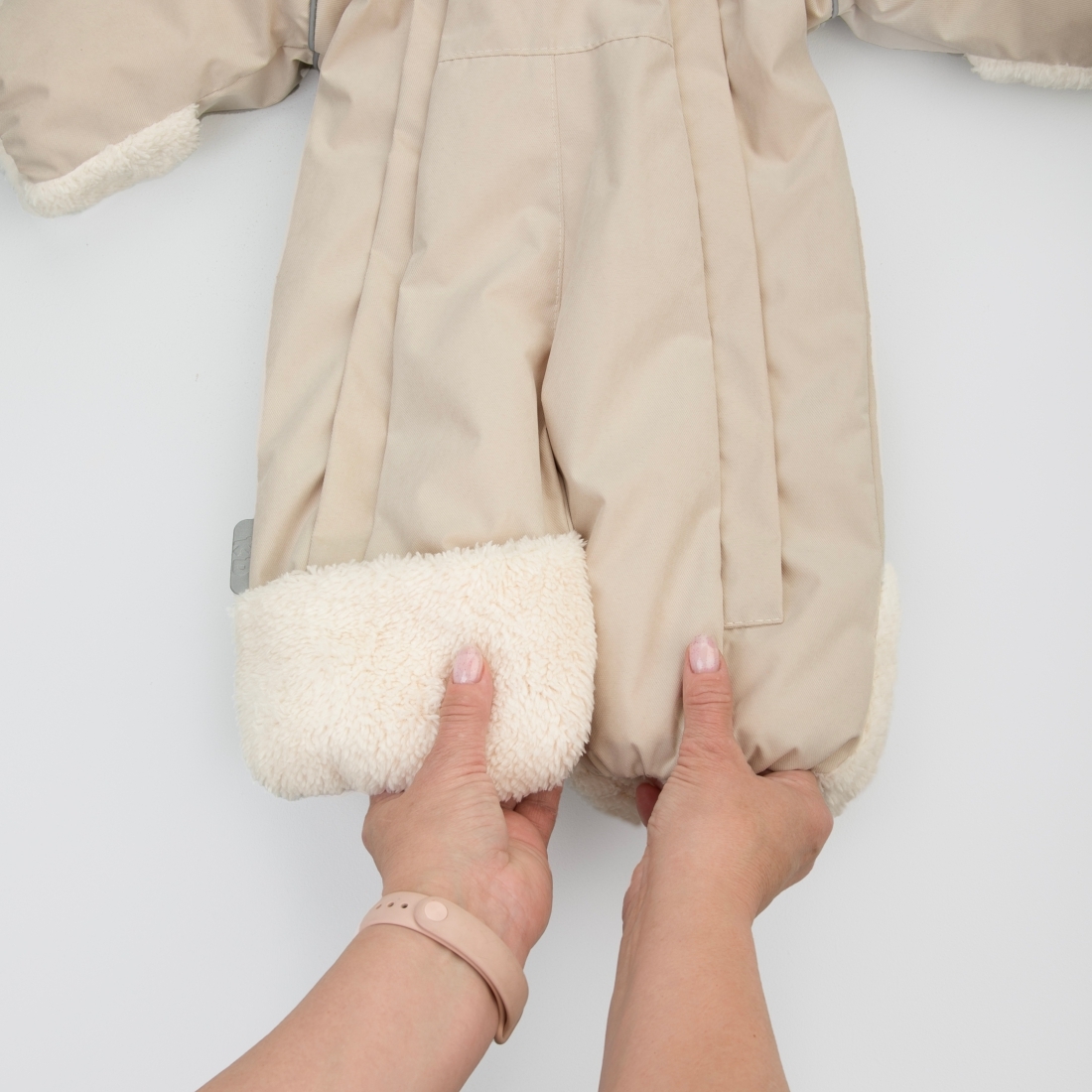 На рукавах и штанинах отвороты из шерпы