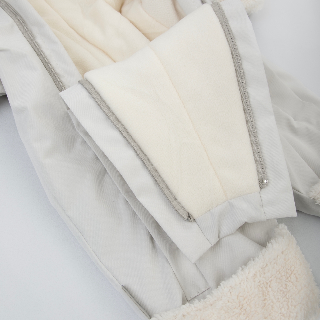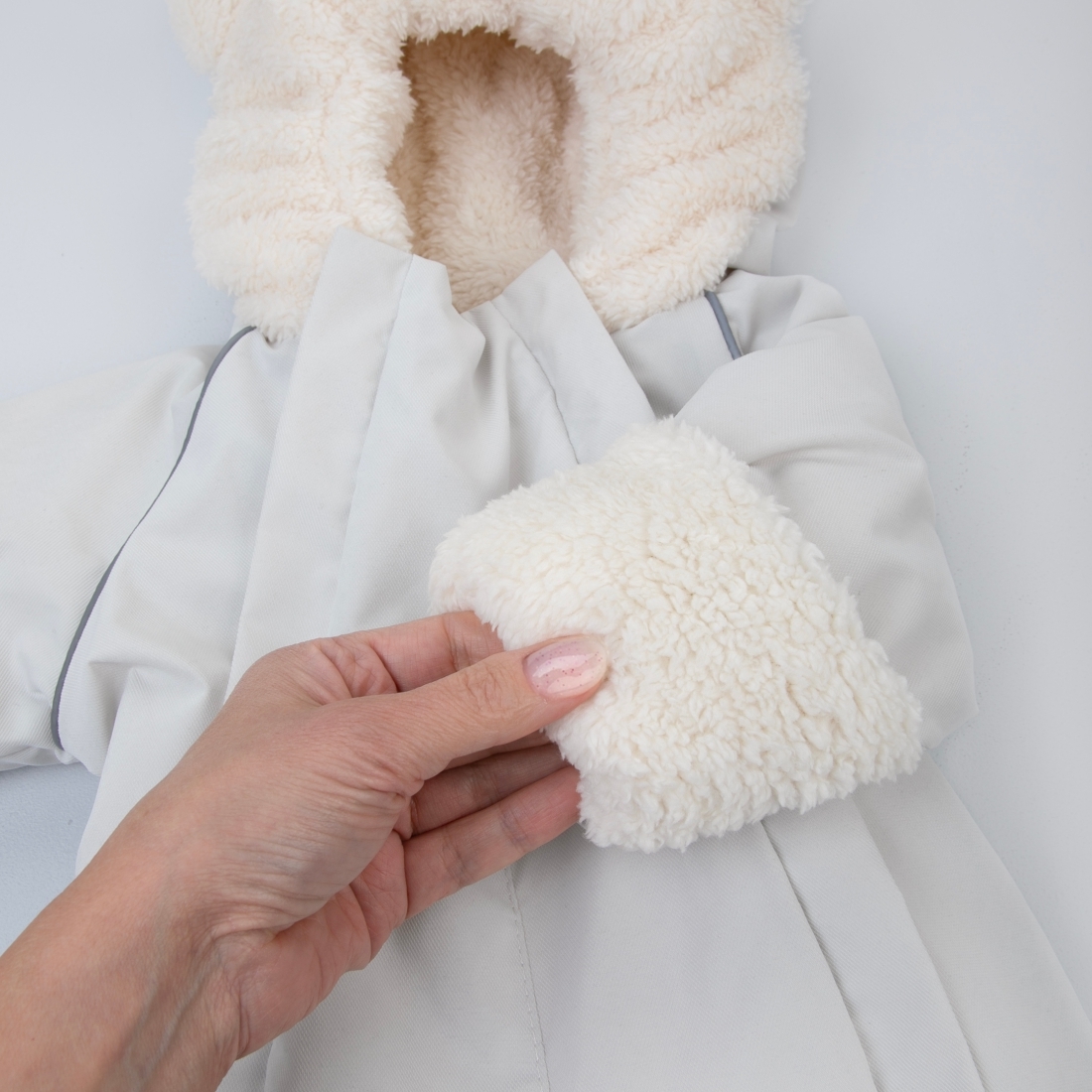 Капюшон на резинке с подкладом из шерпы, плотно прилегает к голове малыша.