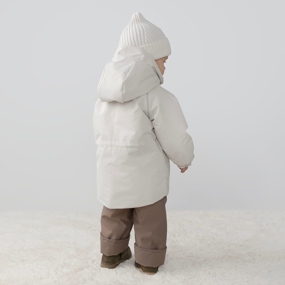 Капюшон с отворотом. Застежка молния с планкой, фиксируется на кнопки.