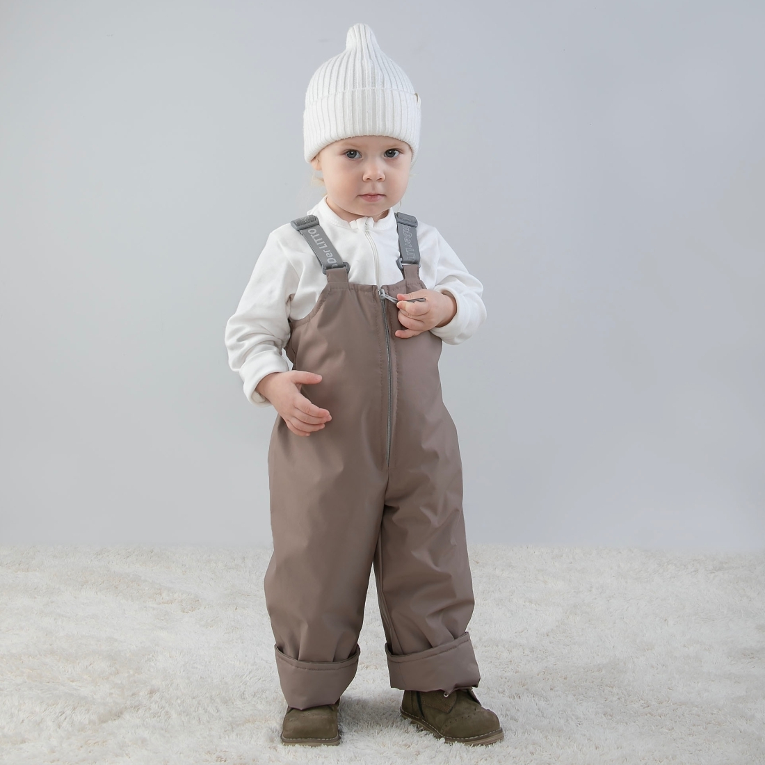 Полукомбинезон с отворотами, по спинке расположена резинка.