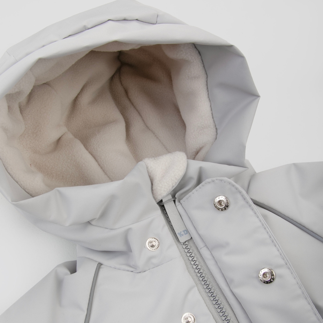 Капюшон с отворотом. Застежка молния с планкой, фиксируется на кнопки.