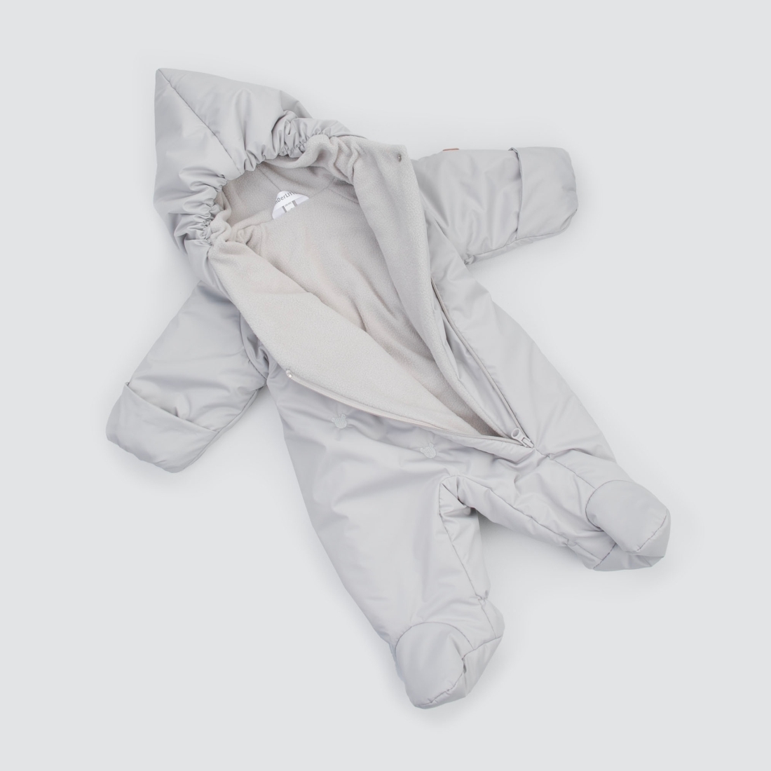 Ассиметричная молния на всю длину, делает процесс одевания малыша простым и удобным.