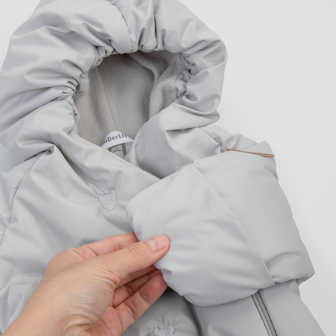 Капюшон на резинке, плотно прилегает к голове малыша