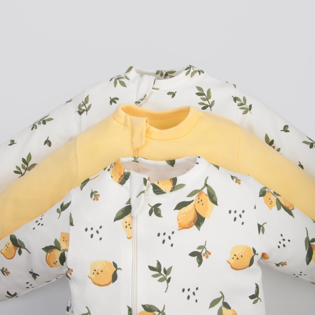 Комбинезон слип на молнии открытый "Лимончики", 3 шт/уп