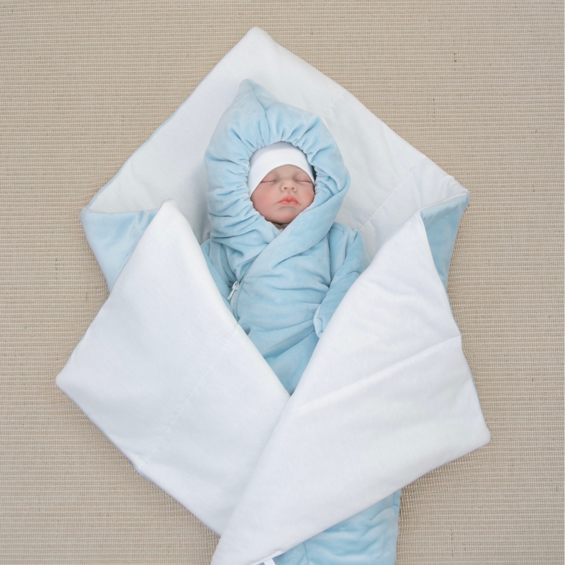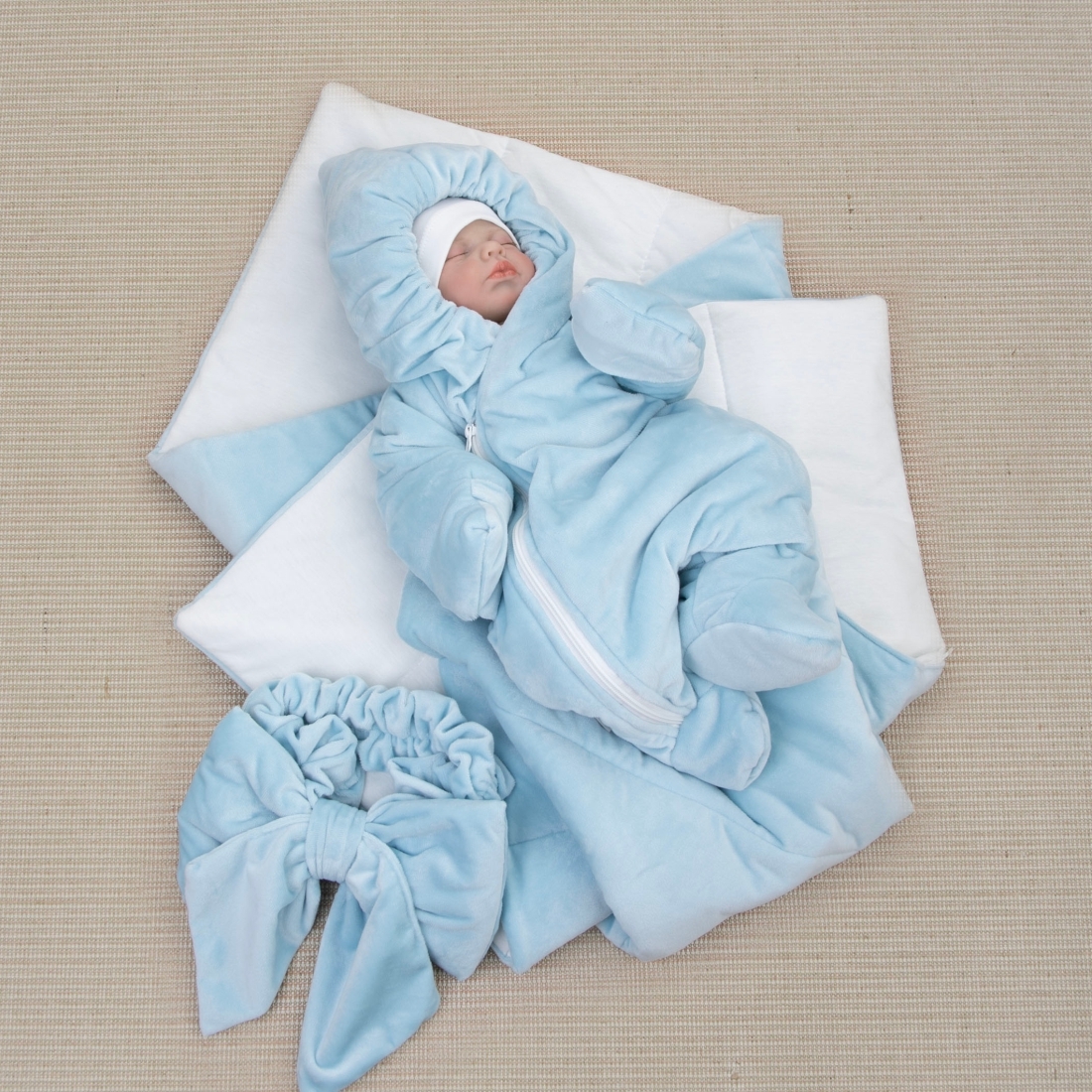 Цвет одеяла, комбинезона: темно-голубой