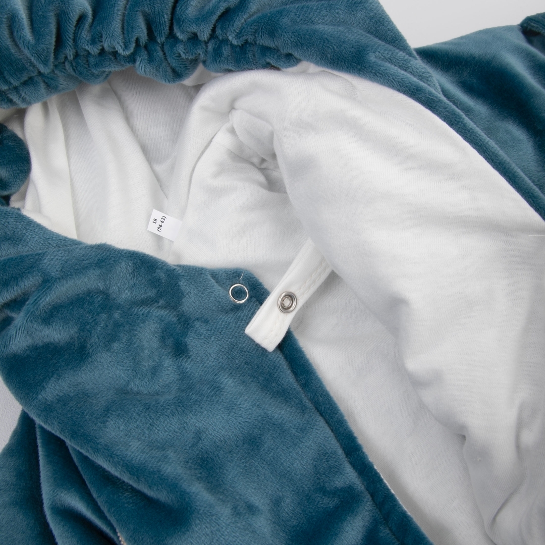Комбинезона: верх - плюш (п/э 100%), наполнитель – синтепон 100 г/м2 (п/э 100%), подклад - трикотаж кулир высшего качества (хлопок 100%)