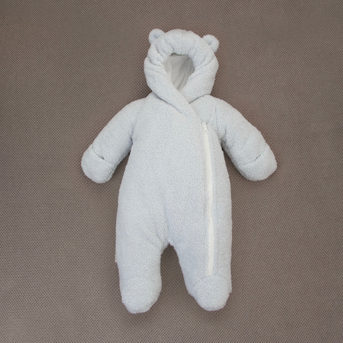 3. Комбинезон, утепленный из велсофта барашка с ушками (закрытые ножки, на рукавах отвороты, косая молния по длине изделия, капюшон с мягкой резинкой для плотного прилегания)