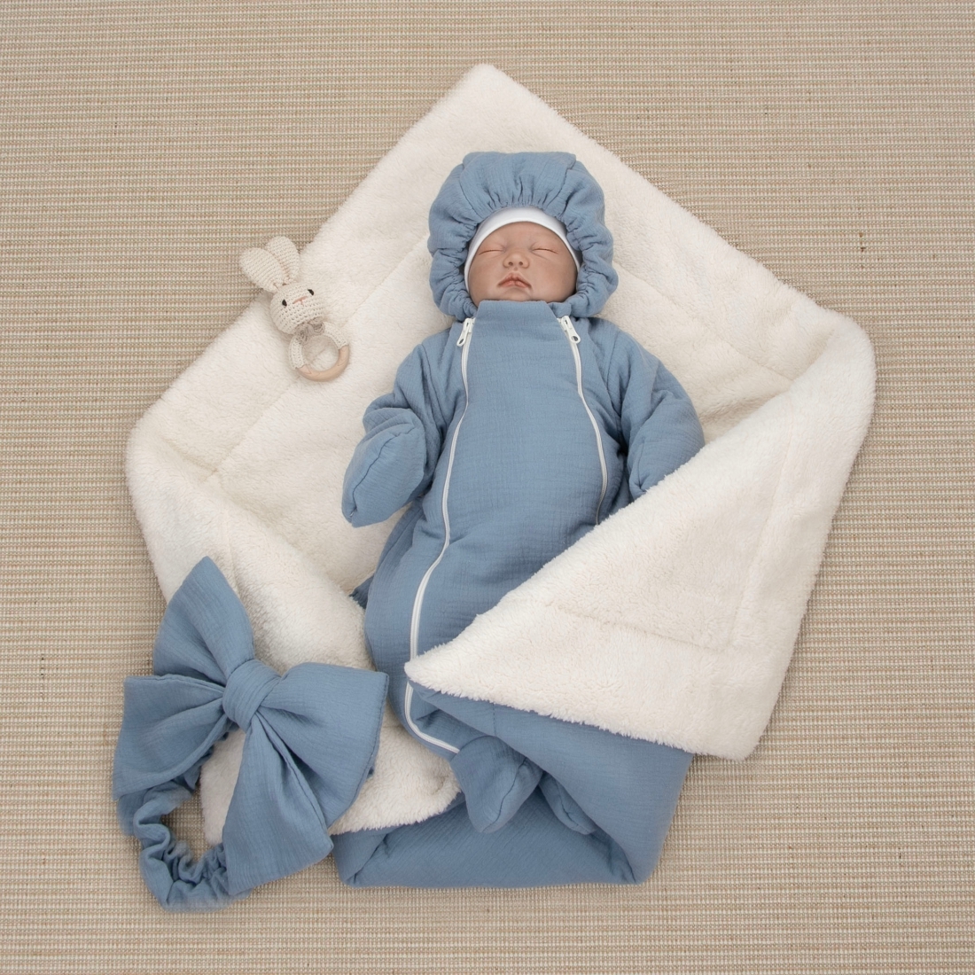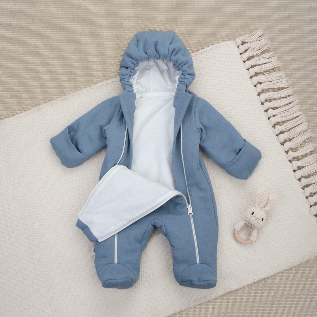 Комбинезона: верх - муслин (хлопок 100%), наполнитель - синтепон 100 г/м2,