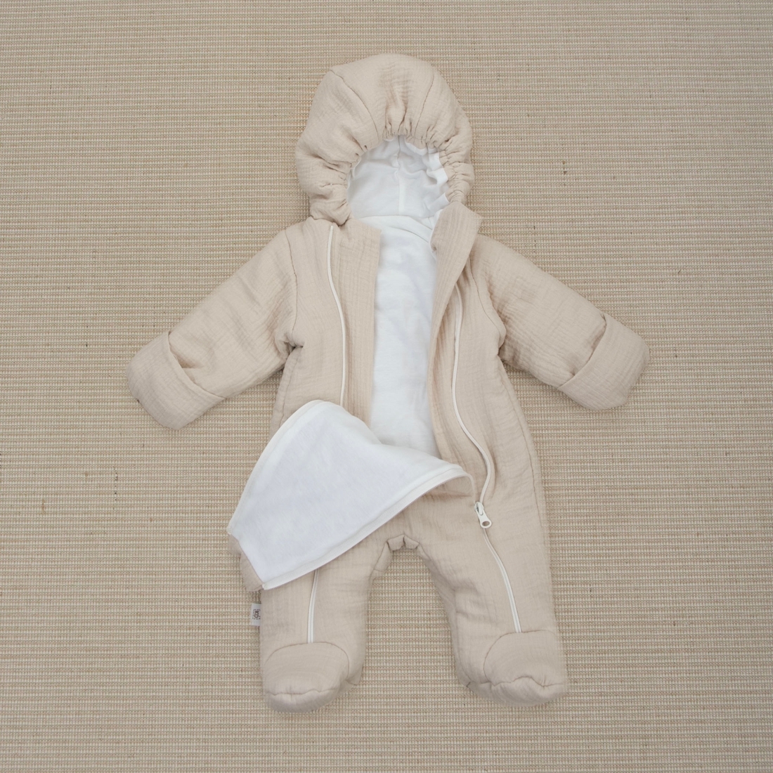 Комбинезона: верх - муслин (хлопок 100%), наполнитель - синтепон 100 г/м2,