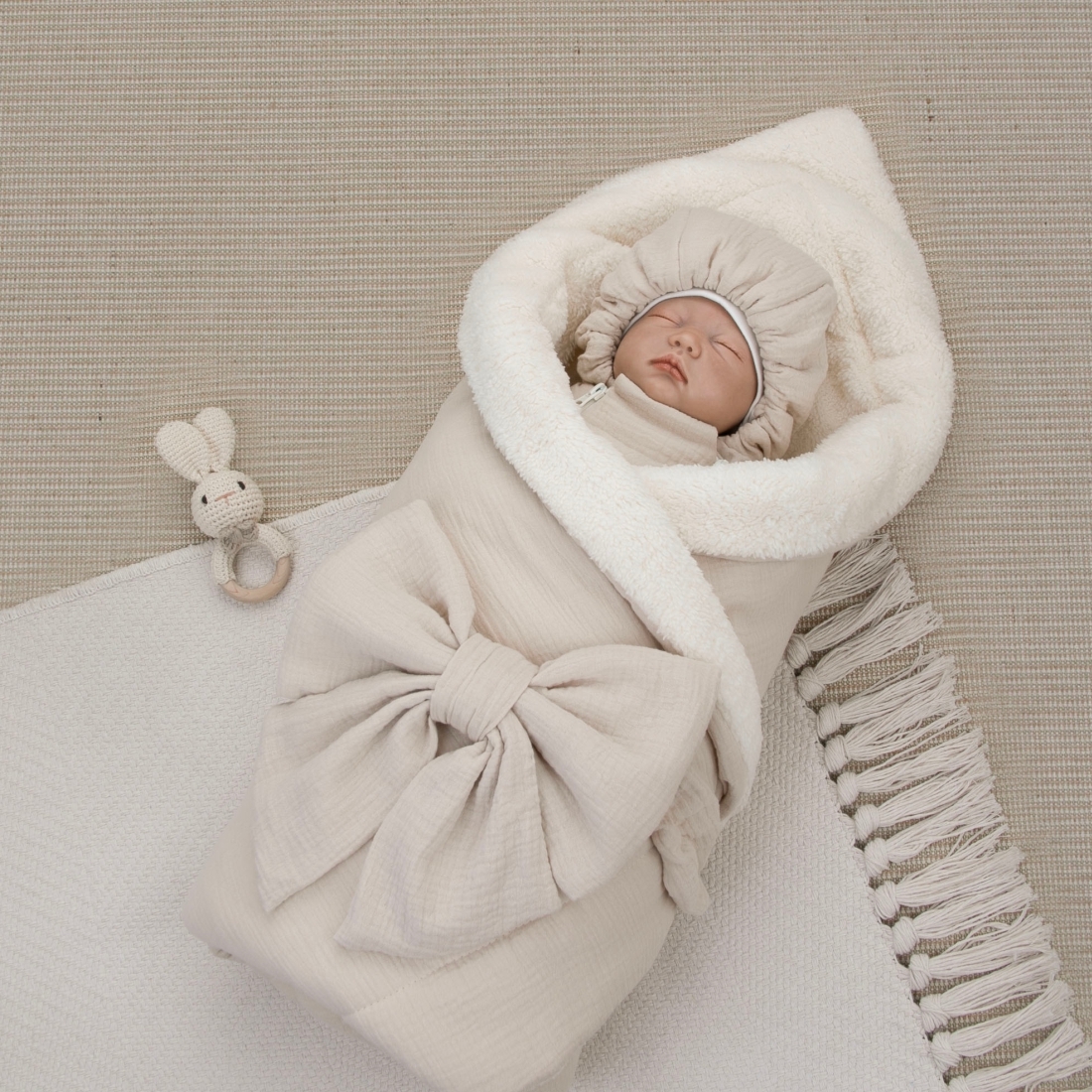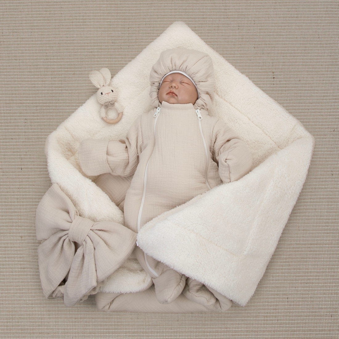 Комплект на выписку 5 предметов "Муслин", демисезонный, бежевый