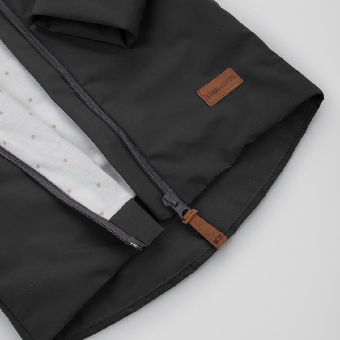 Защитный клапан застежки у горловины.