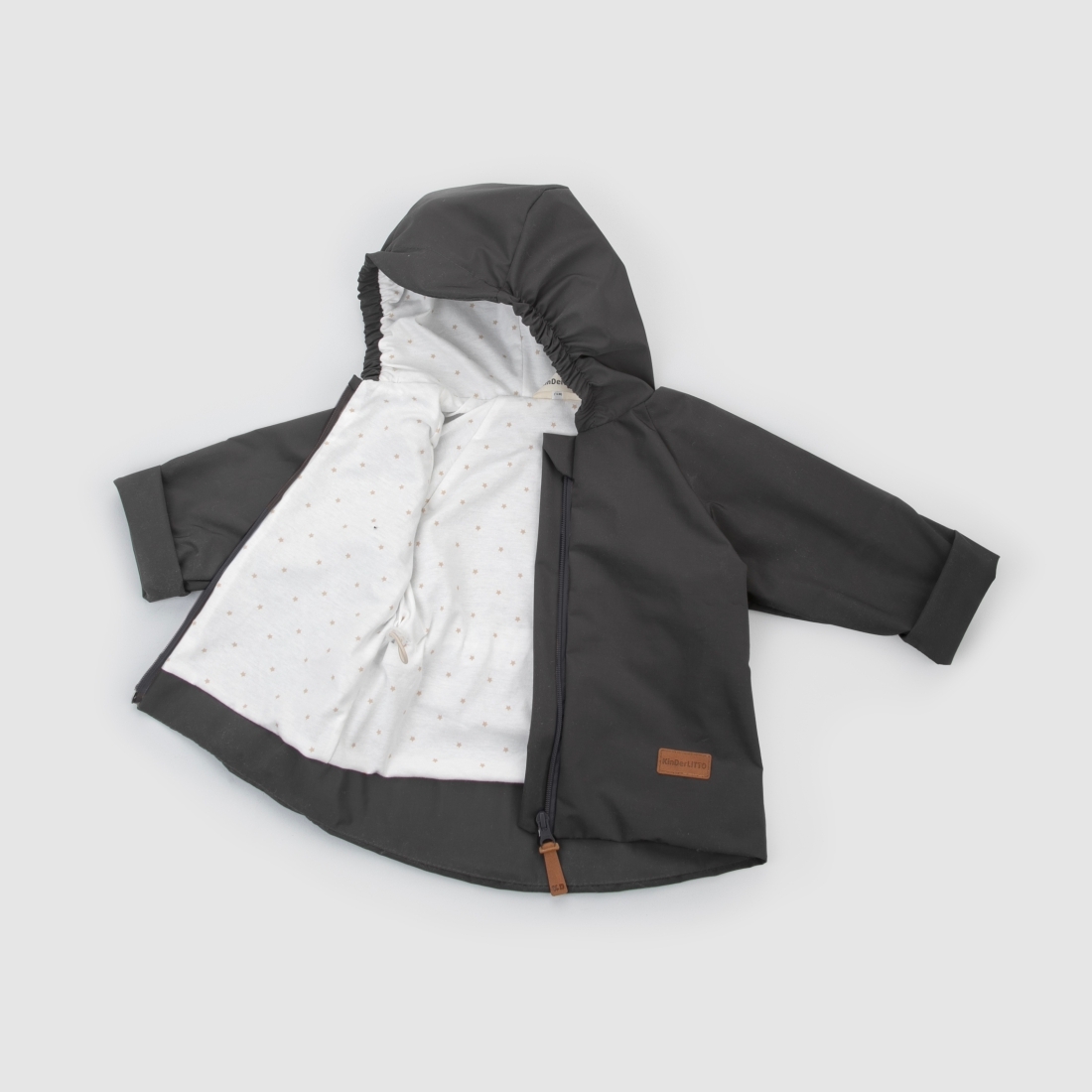 На капюшоне по бокам резинка, верхняя часть капюшона удлинена в виде козырька.