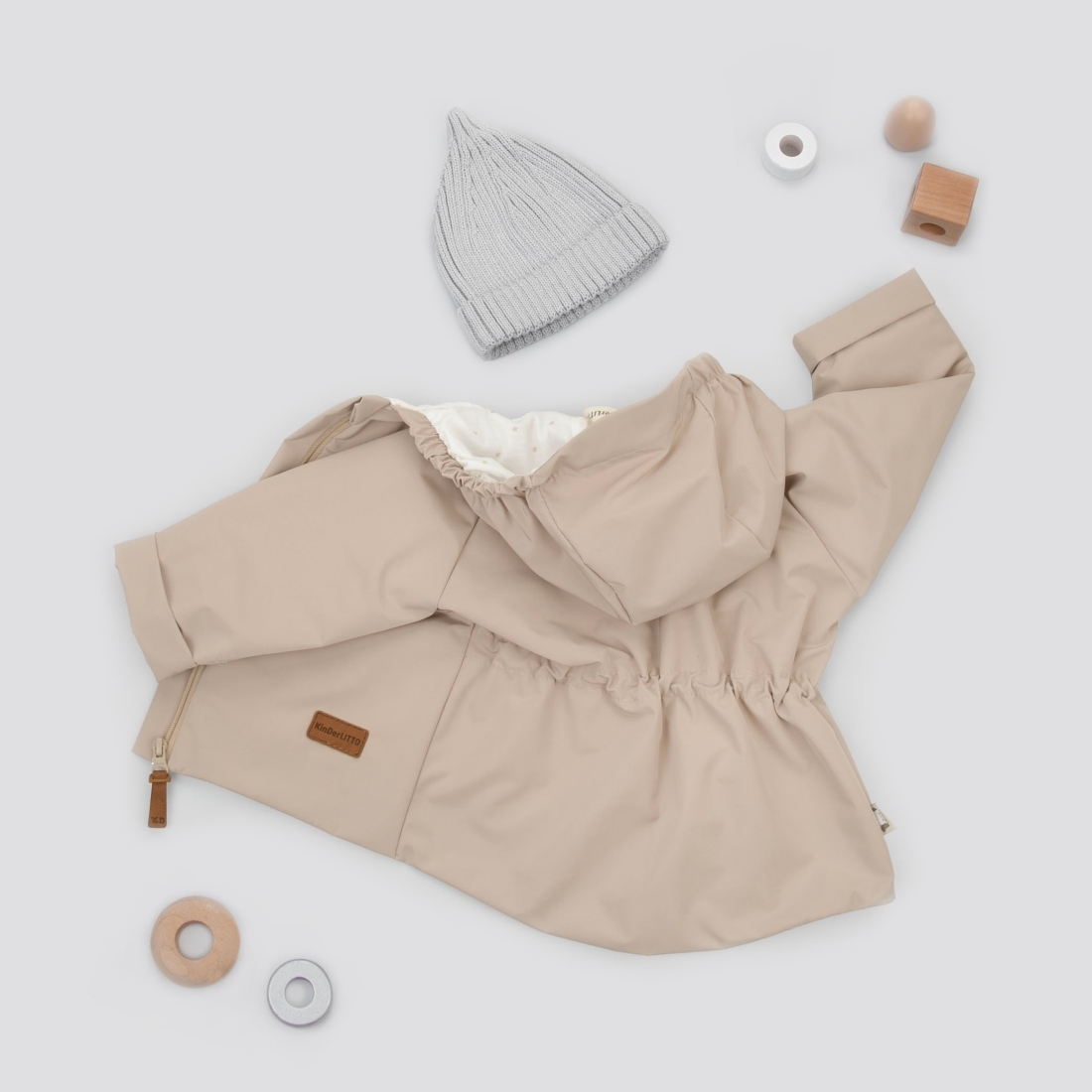 На капюшоне по бокам резинка, верхняя часть капюшона удлинена в виде козырька.