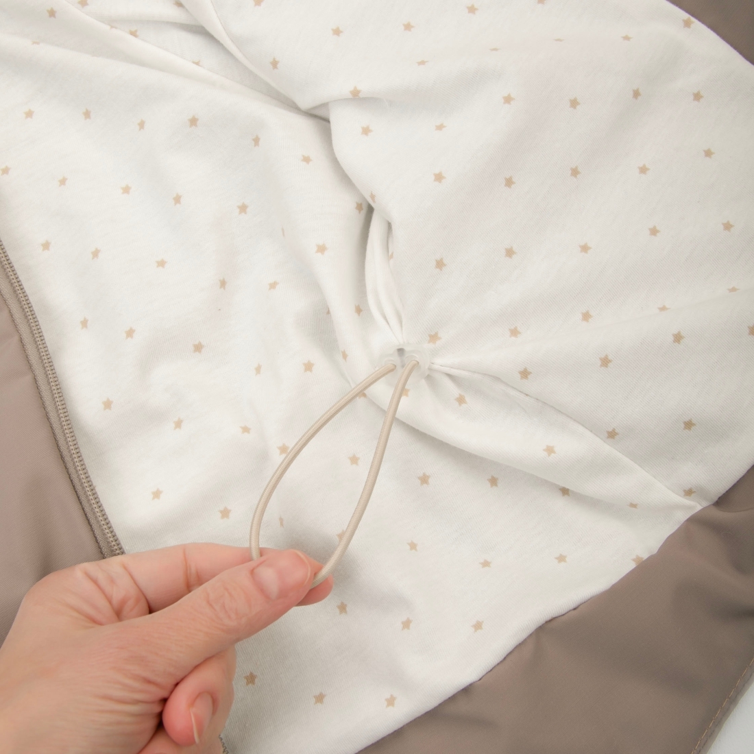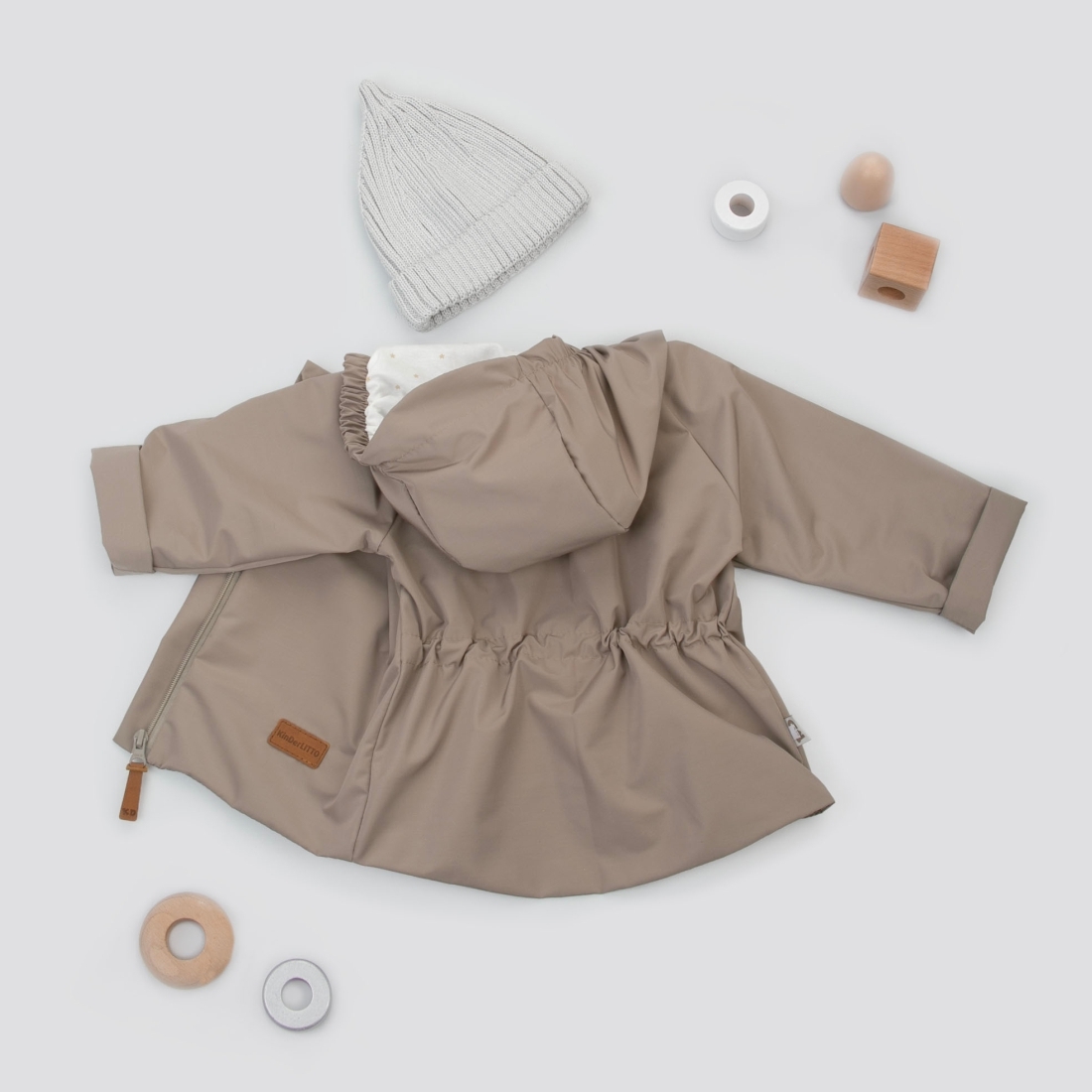 На капюшоне по бокам резинка, верхняя часть капюшона удлинена в виде козырька.
