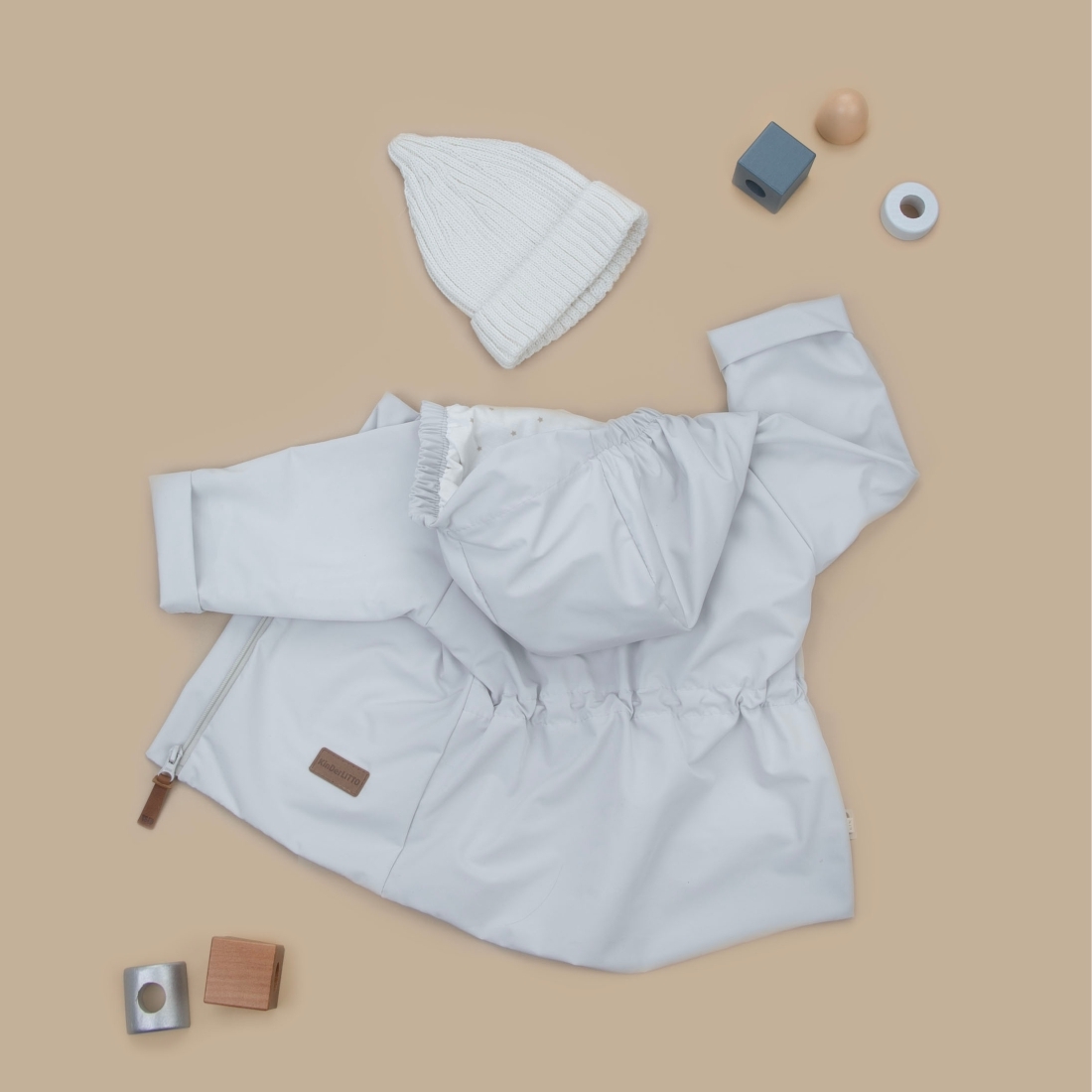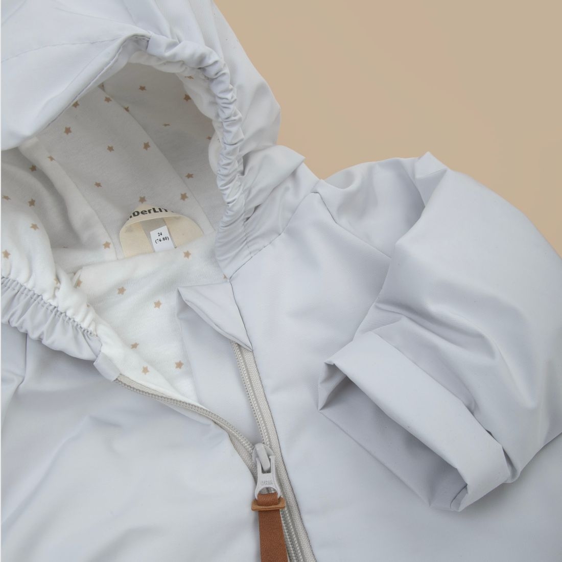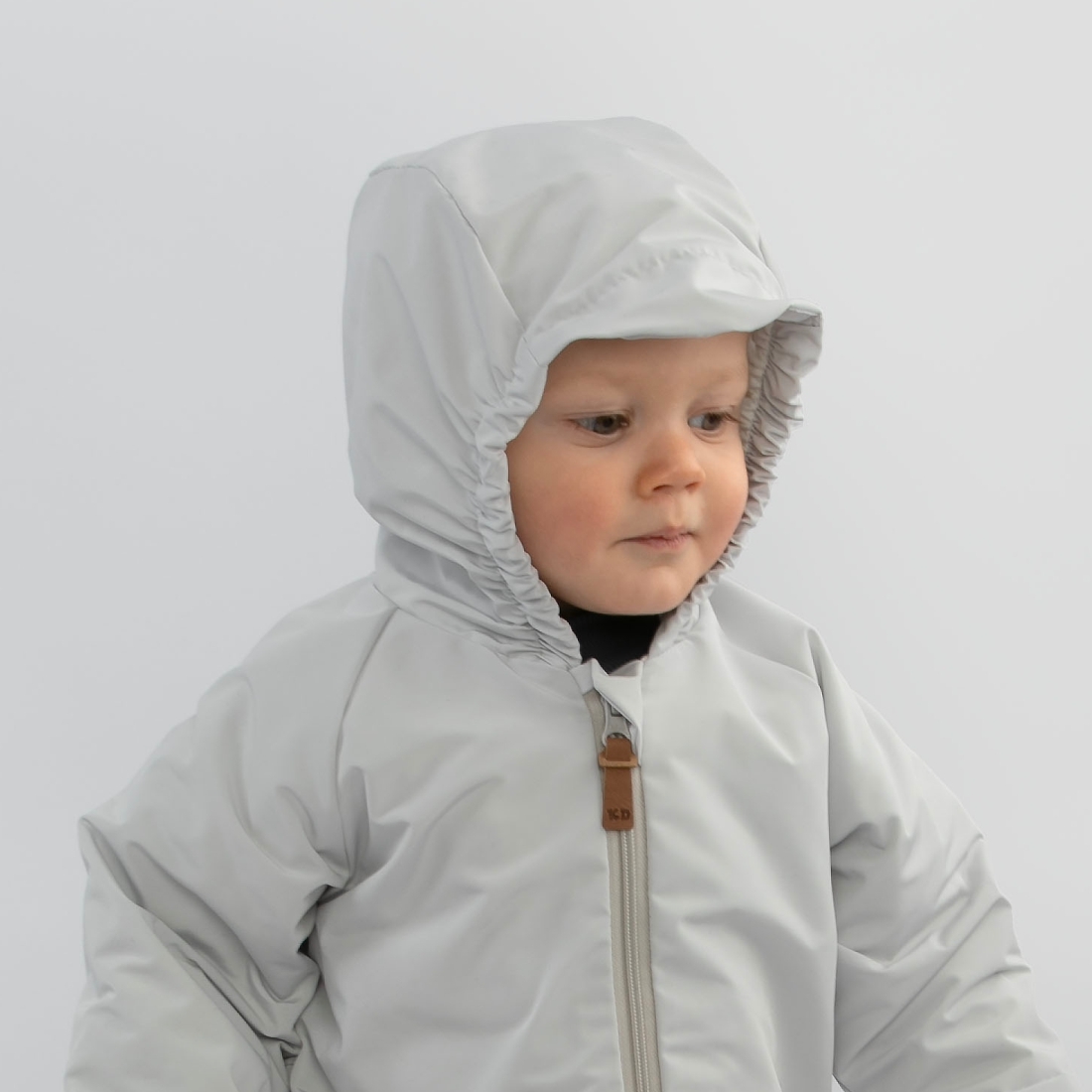 На капюшоне по бокам резинка, верхняя часть капюшона удлинена в виде козырька.