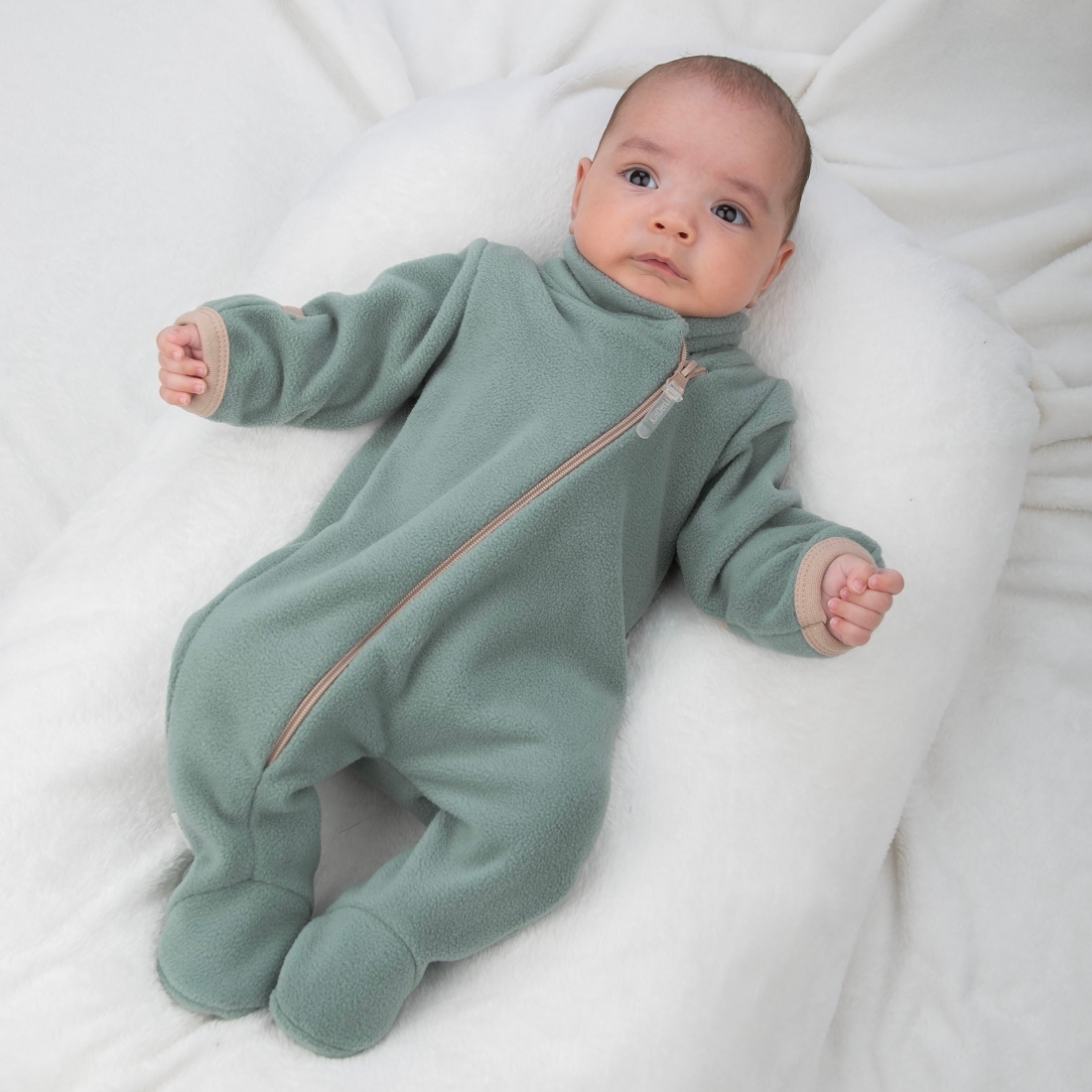 Косая молния на всю длину, делает процесс одевания малыша простым и удобным.