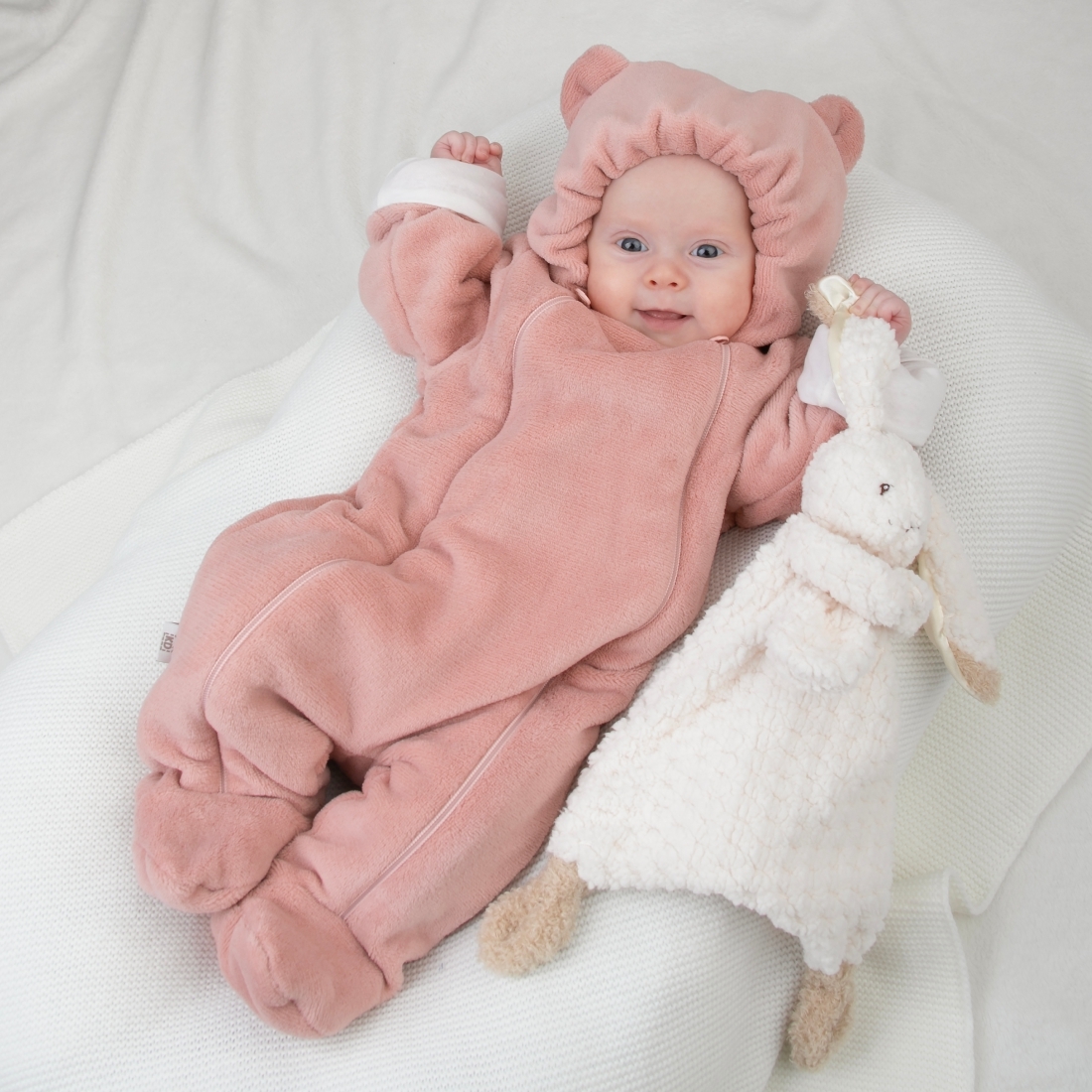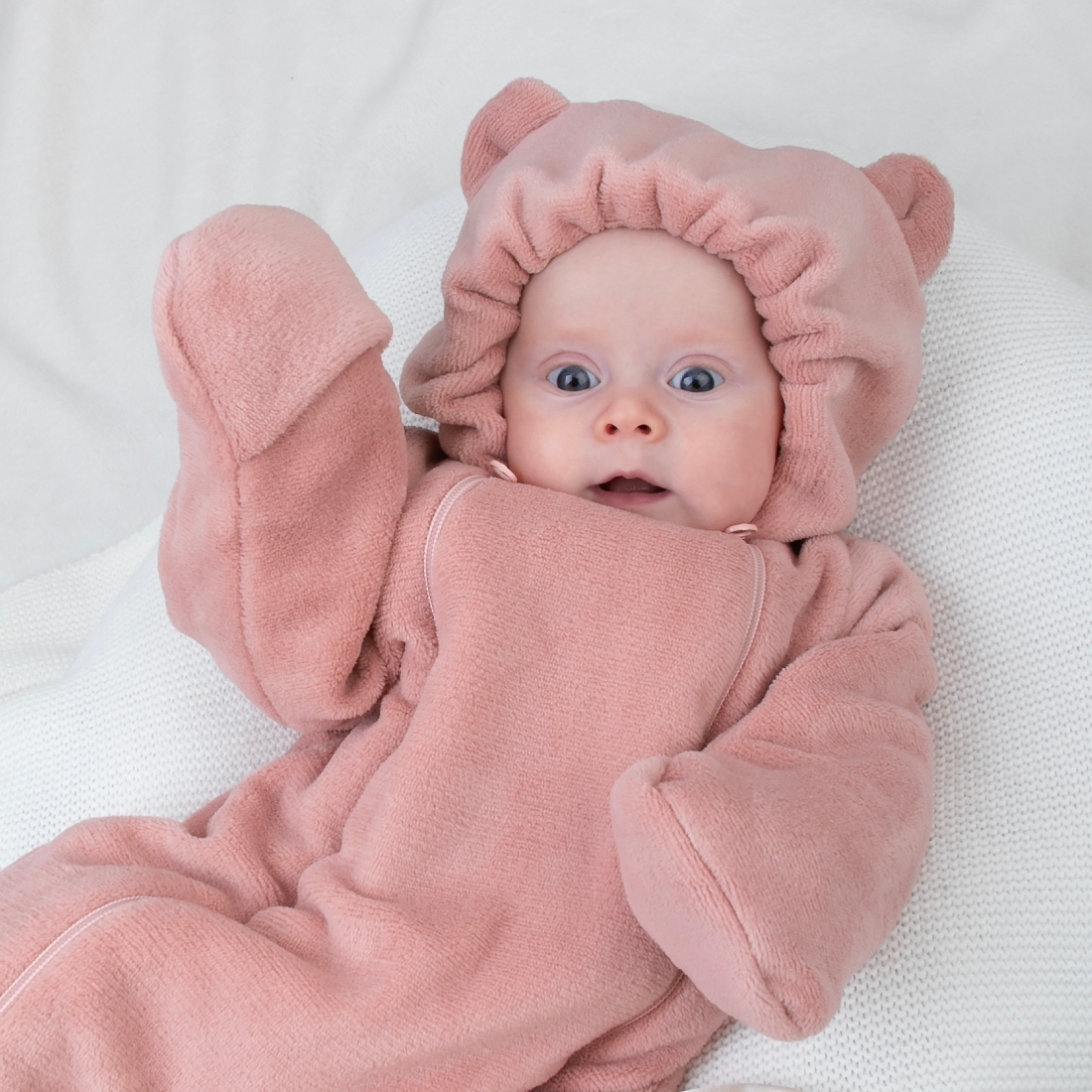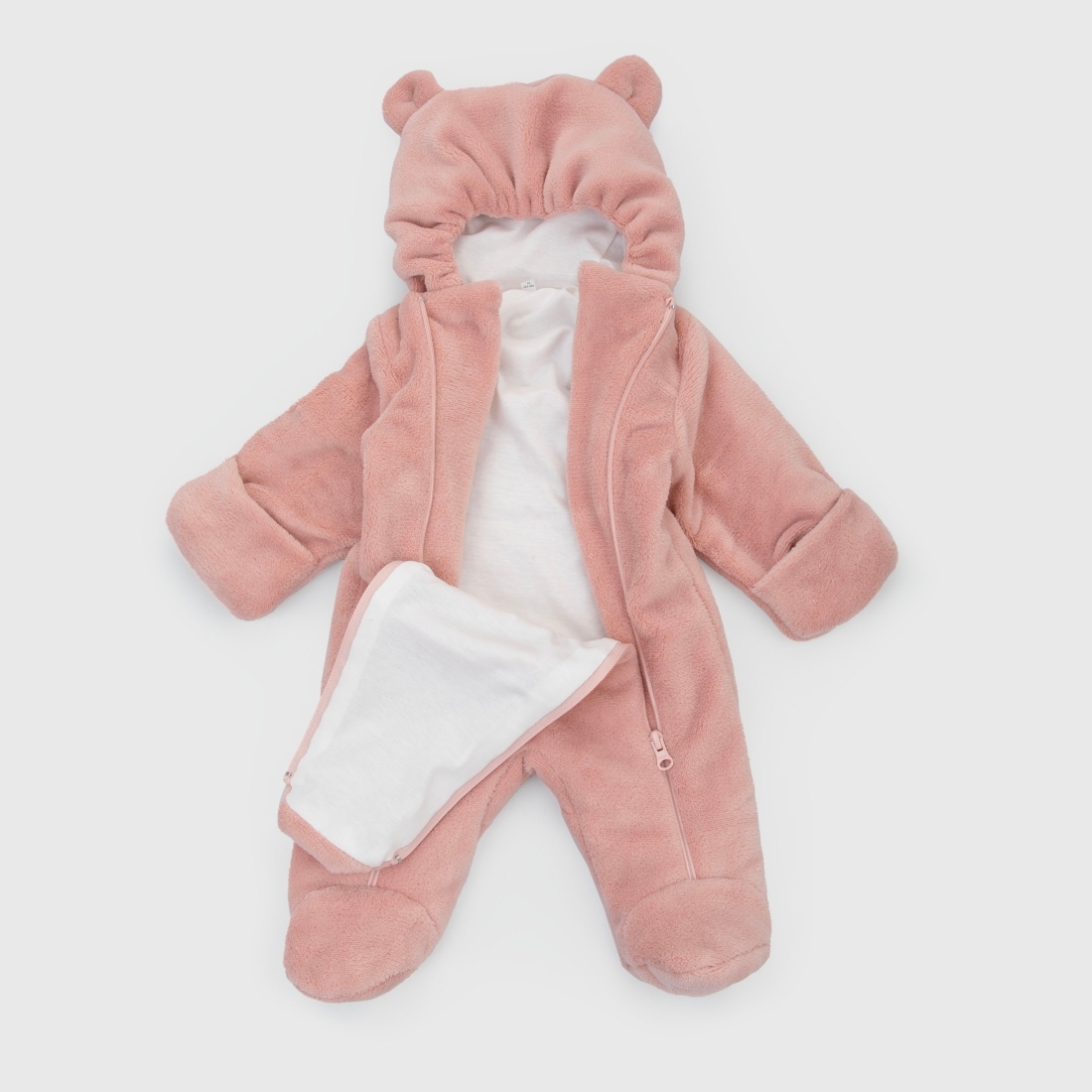 Отвороты на рукавах позволят спрятать ручки от ветра. Ножки закрыты
