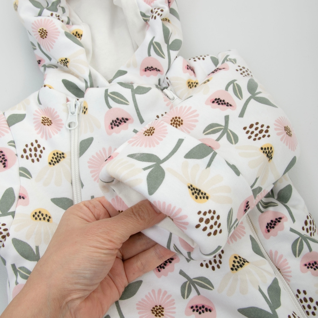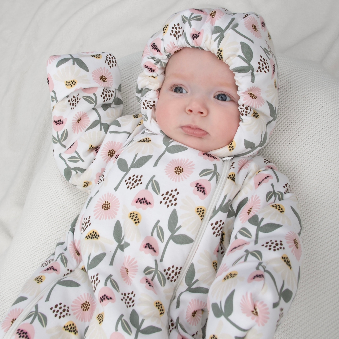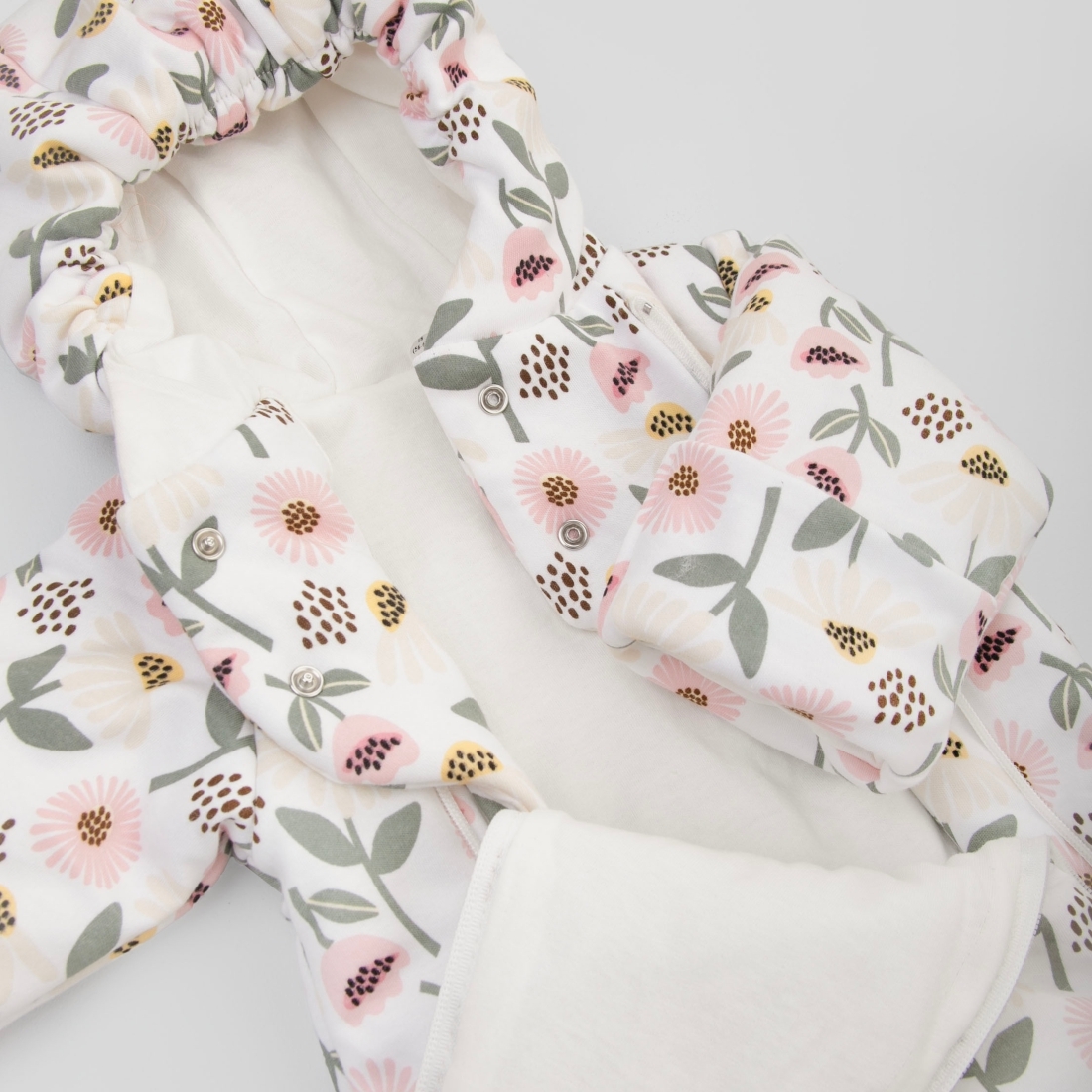 Отвороты на рукавах позволят спрятать ручки от ветра. Ножки закрыты