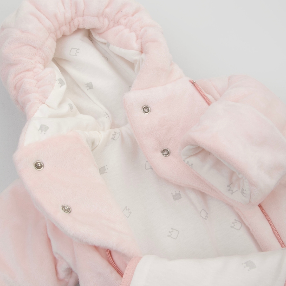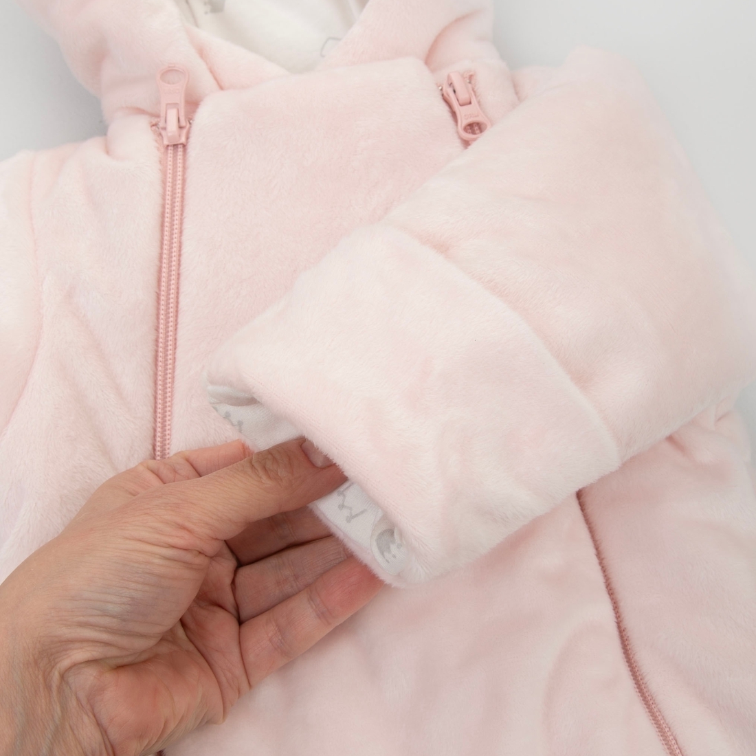 Отвороты на рукавах позволят спрятать ручки от ветра. Ножки закрыты